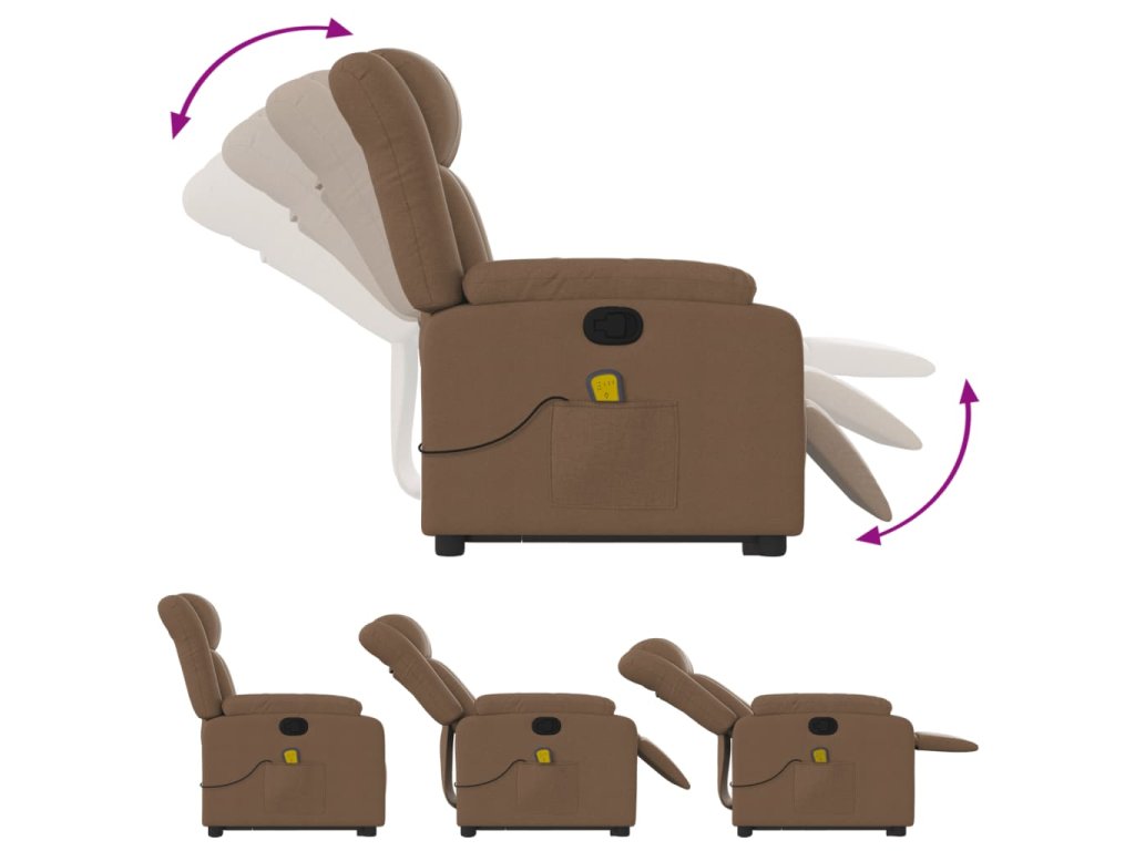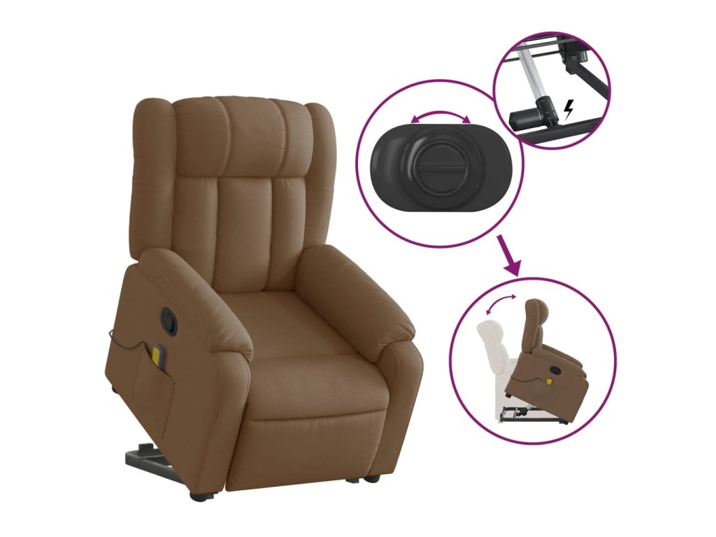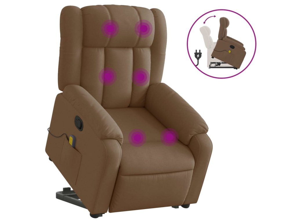 Zvedací masážní polohovací křeslo hnědé textil 3205332