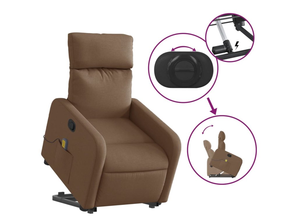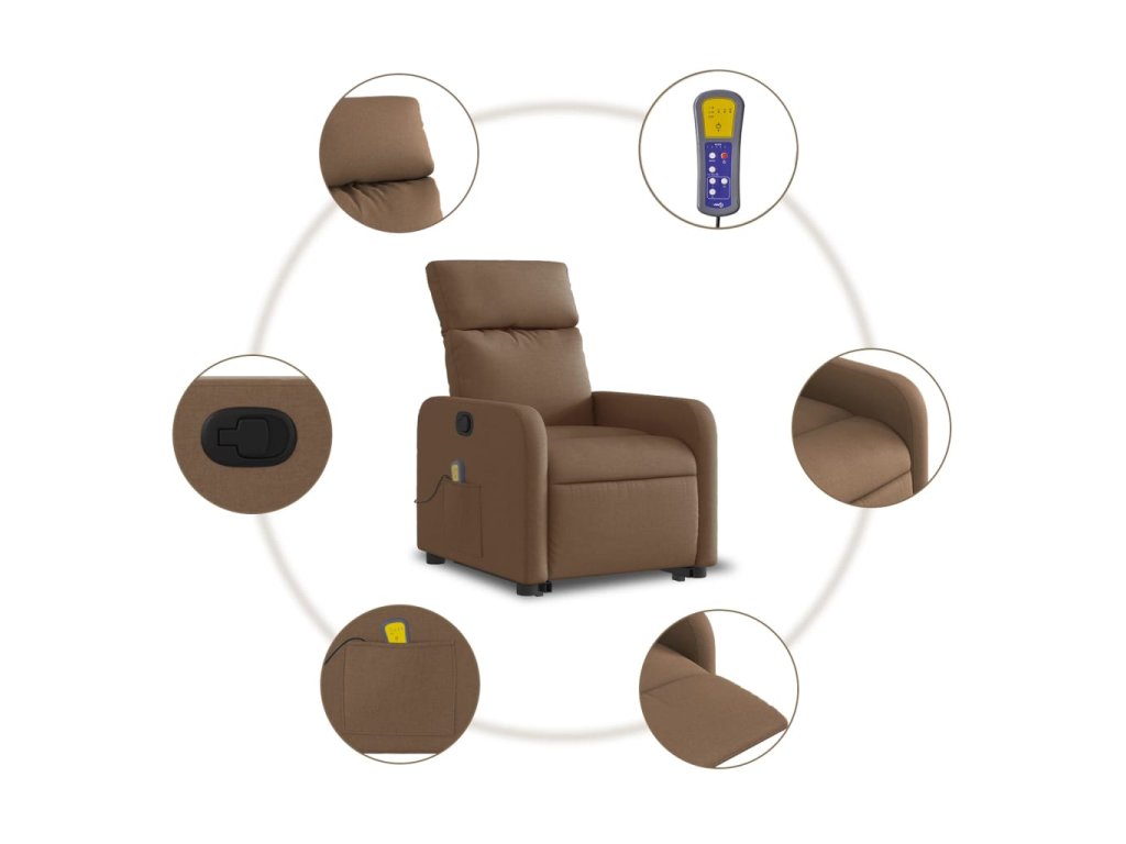 Zvedací masážní polohovací křeslo hnědé textil 3206712