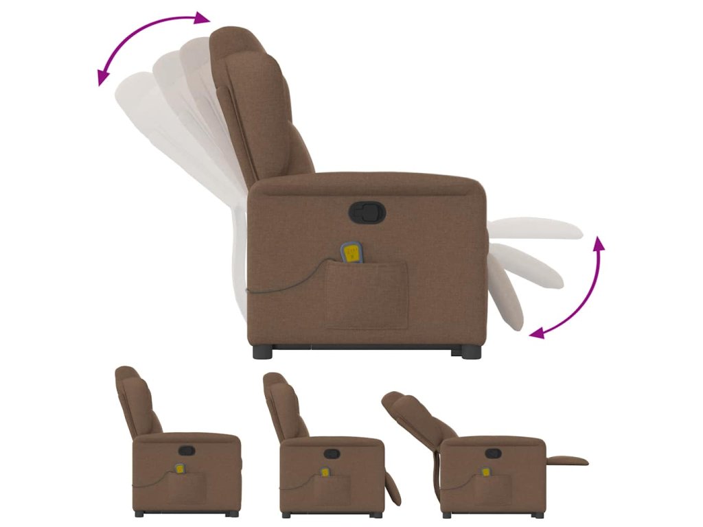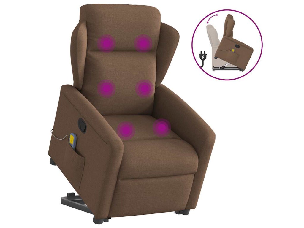 Zvedací masážní polohovací křeslo hnědé textil 3303148
