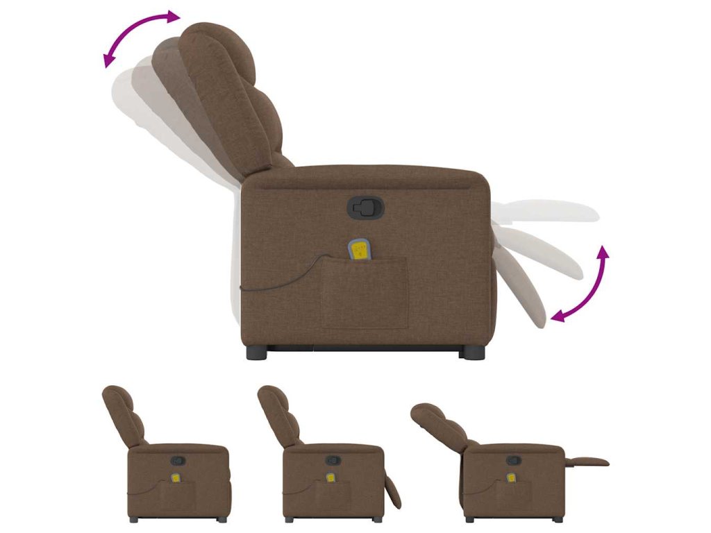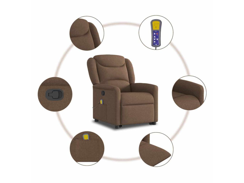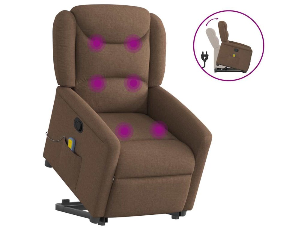 Zvedací masážní polohovací křeslo hnědé textil 3303208