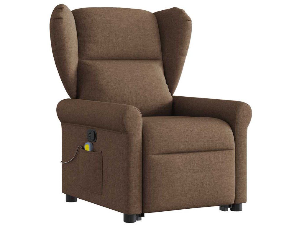 Zvedací masážní polohovací křeslo hnědé textil 3303388