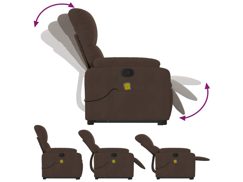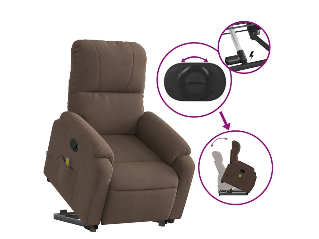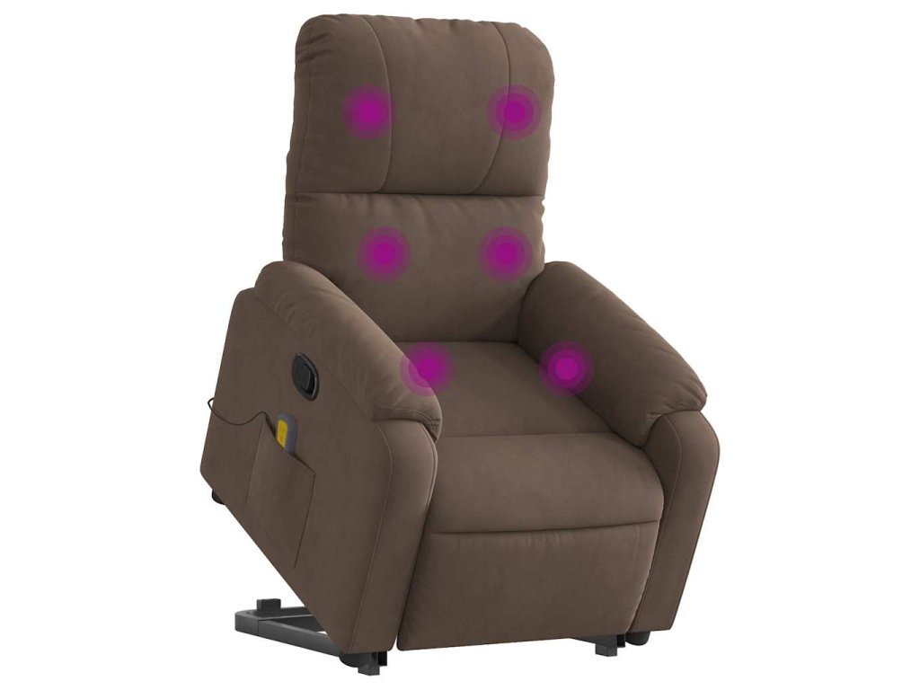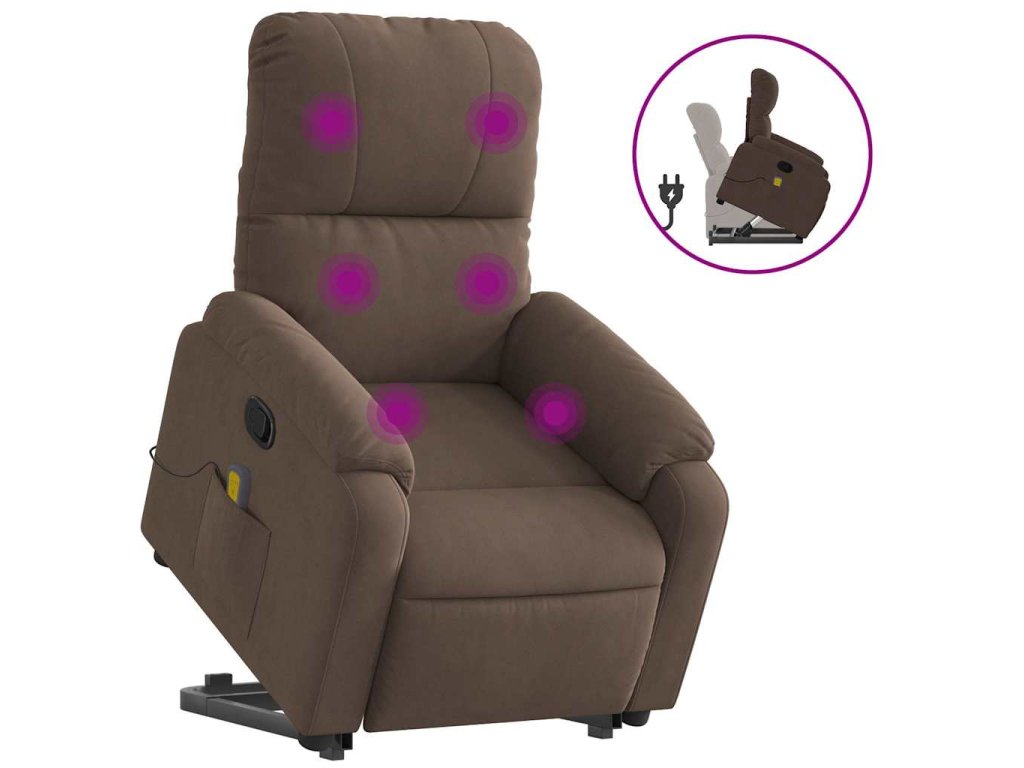 Zvedací masážní polohovací křeslo hnědé tkanina z mikrovlákna 3204935
