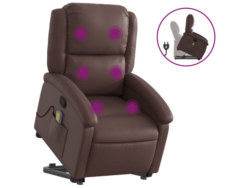 Zvedací masážní polohovací křeslo hnědé umělá kůže 3204235