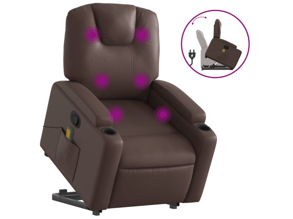 Zvedací masážní polohovací křeslo hnědé umělá kůže 3204439