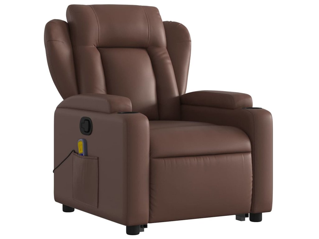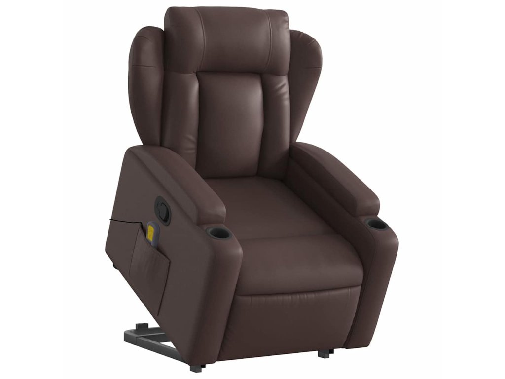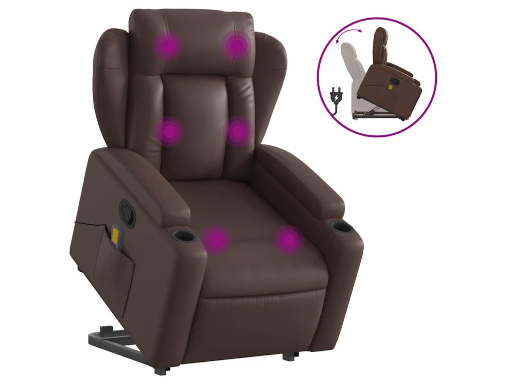 Zvedací masážní polohovací křeslo hnědé umělá kůže 3204553