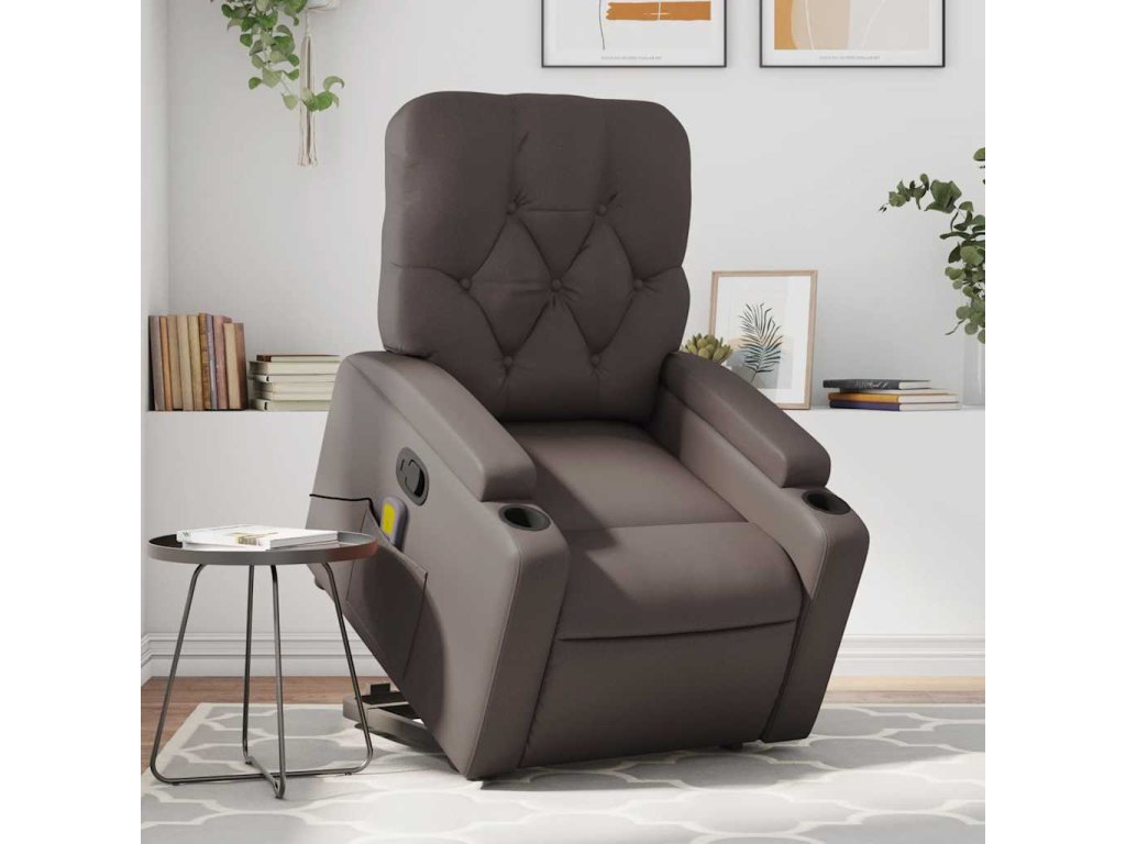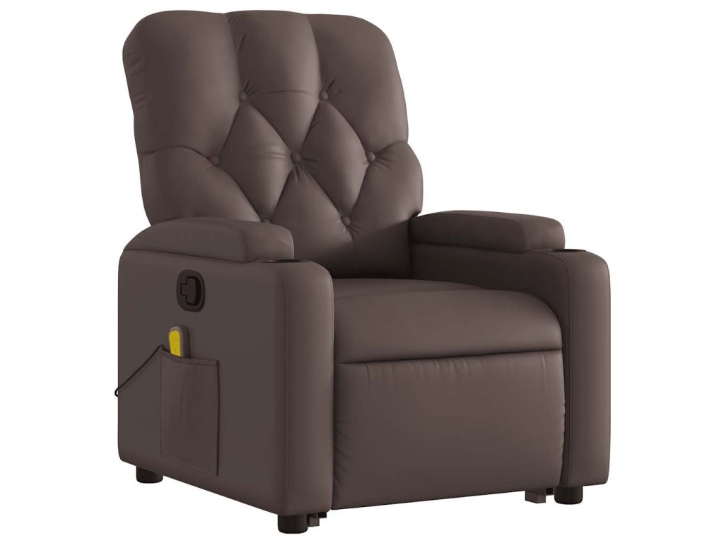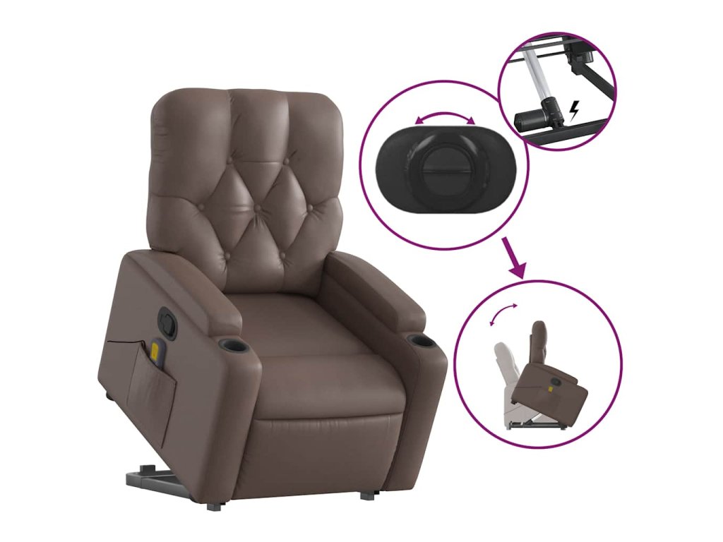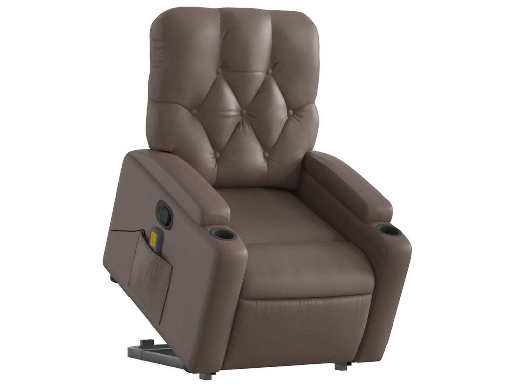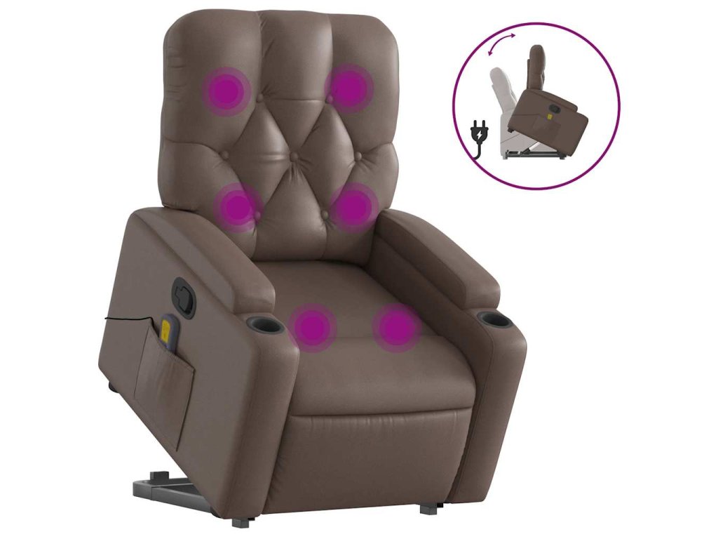 Zvedací masážní polohovací křeslo hnědé umělá kůže 3204781