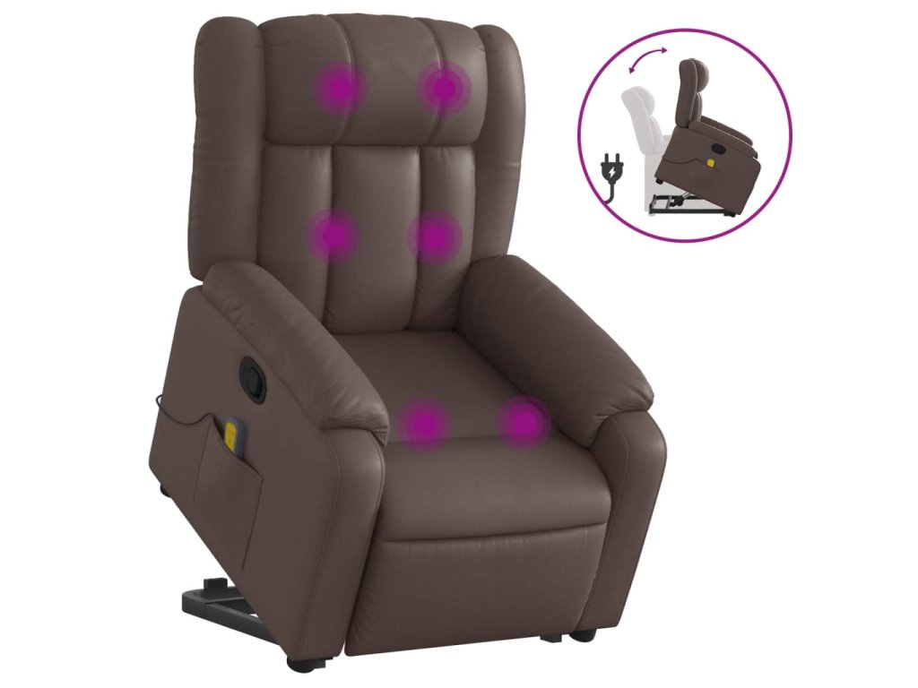Zvedací masážní polohovací křeslo hnědé umělá kůže 3205273