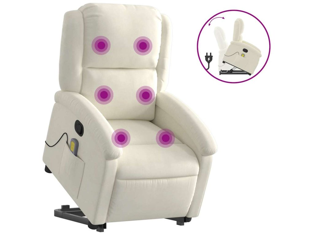 Zvedací masážní polohovací křeslo krémové samet 3204320