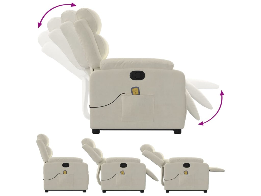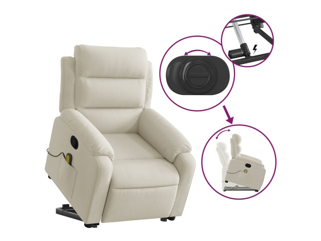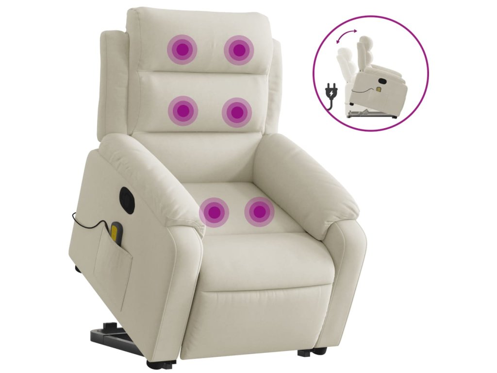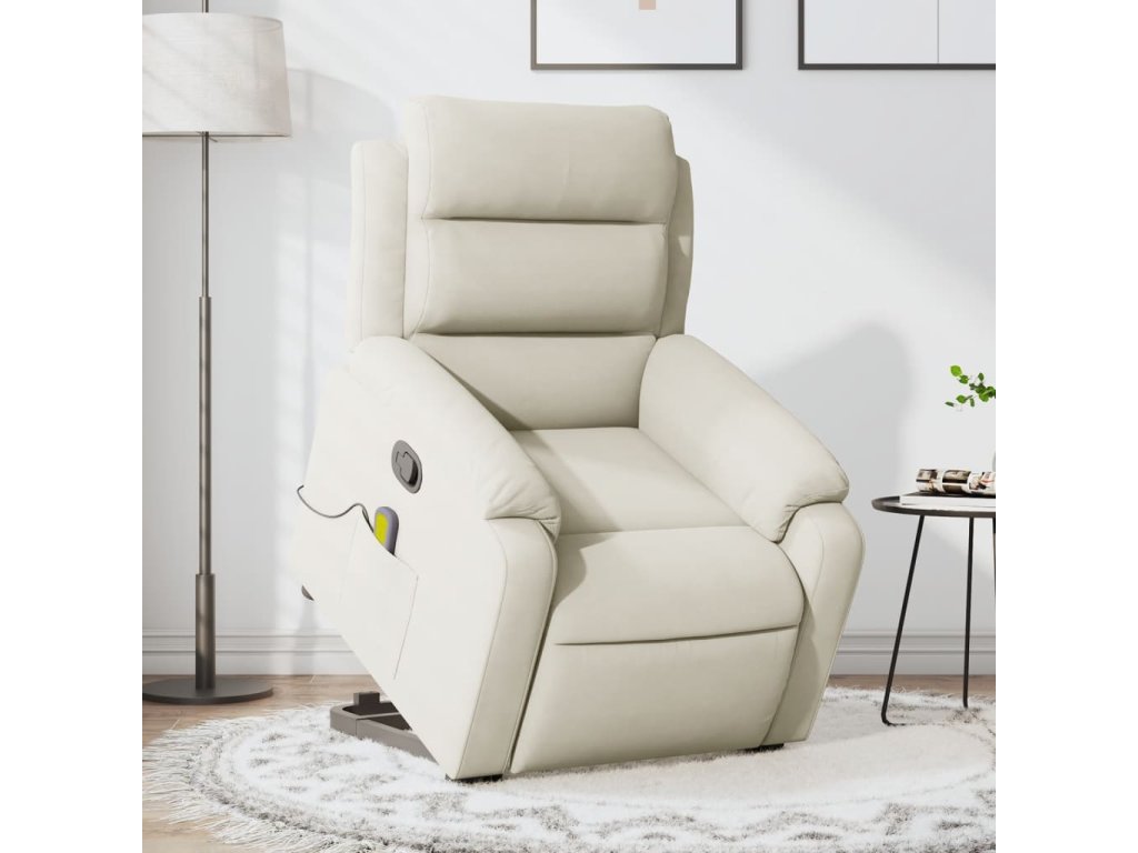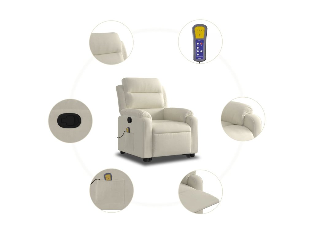 Zvedací masážní polohovací křeslo krémové samet 3205112
