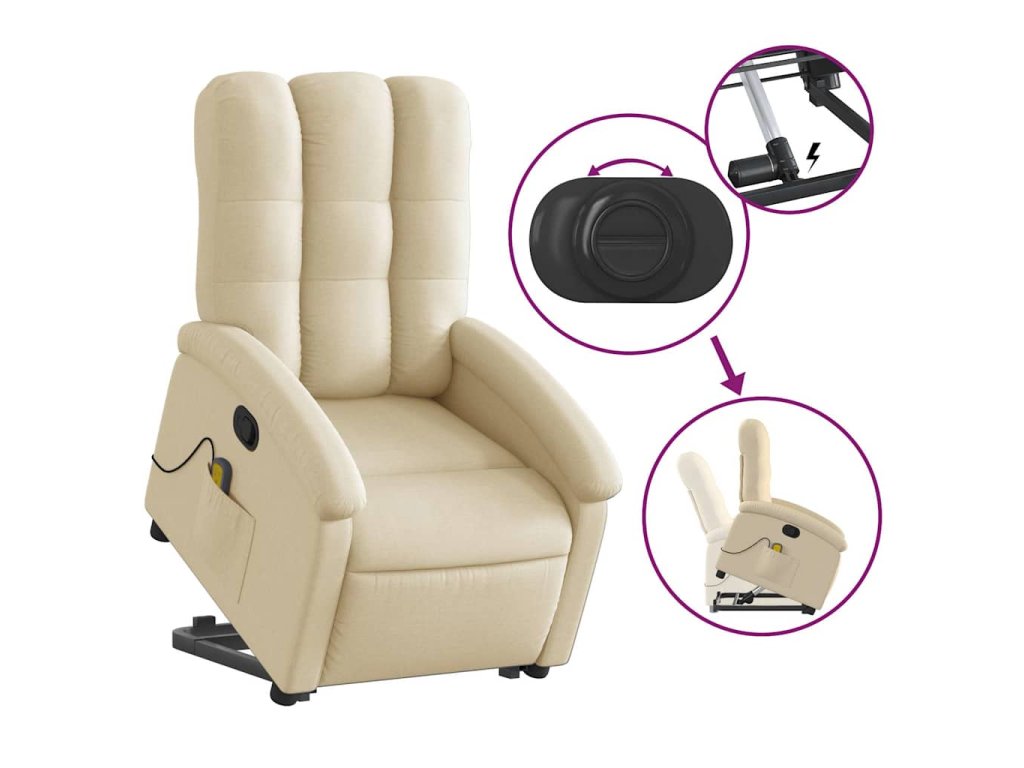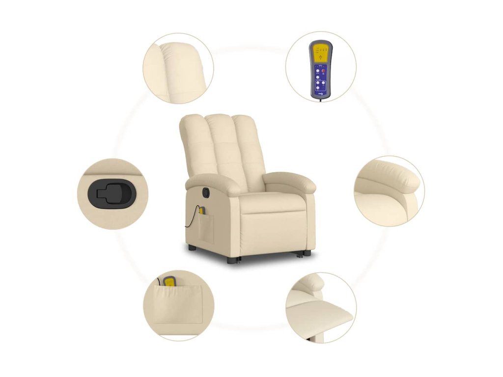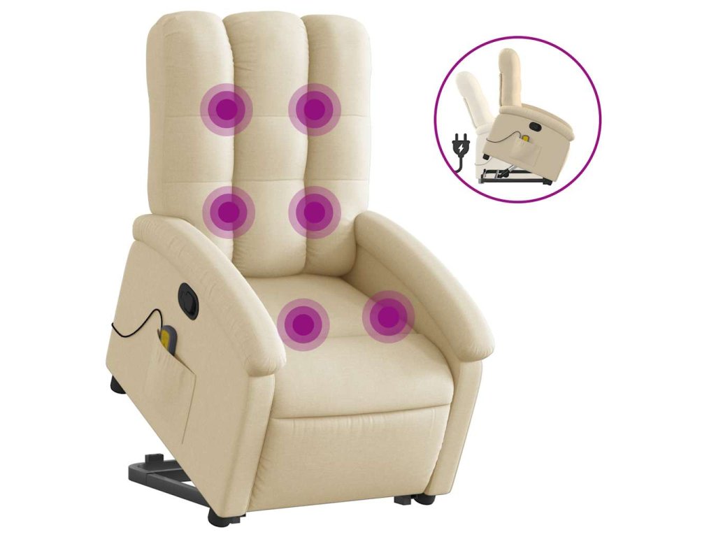 Zvedací masážní polohovací křeslo krémové textil 3204113