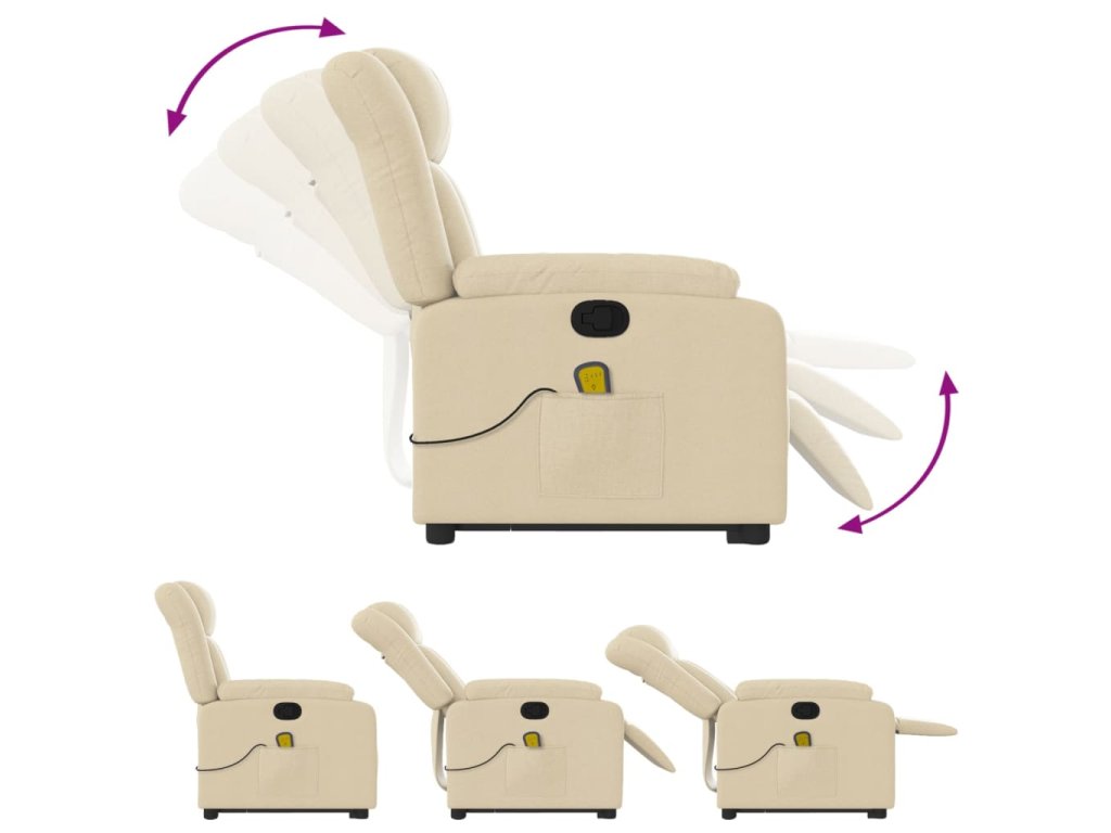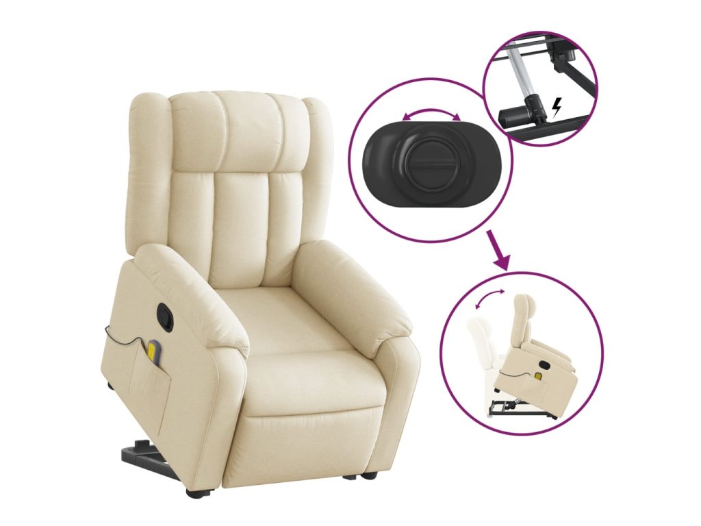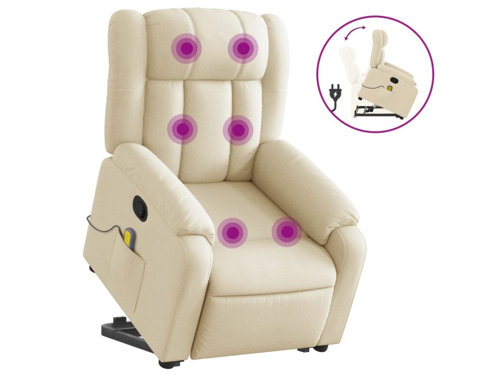 Zvedací masážní polohovací křeslo krémové textil 3205337