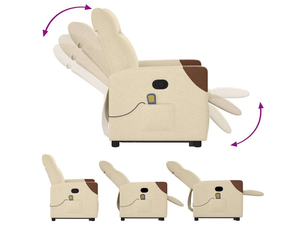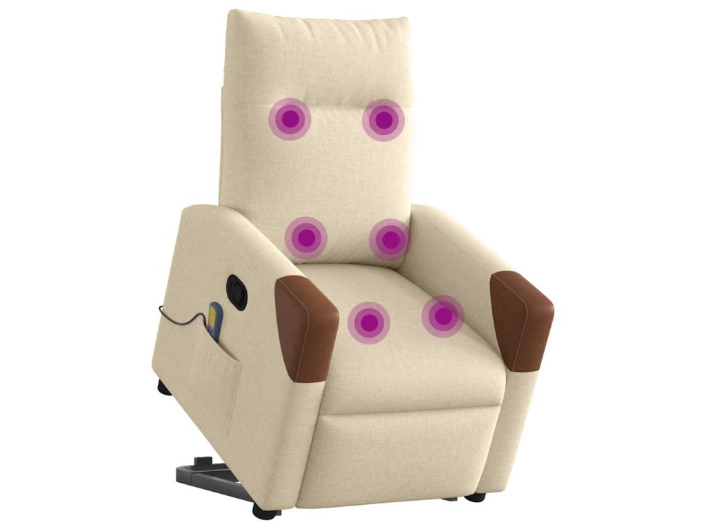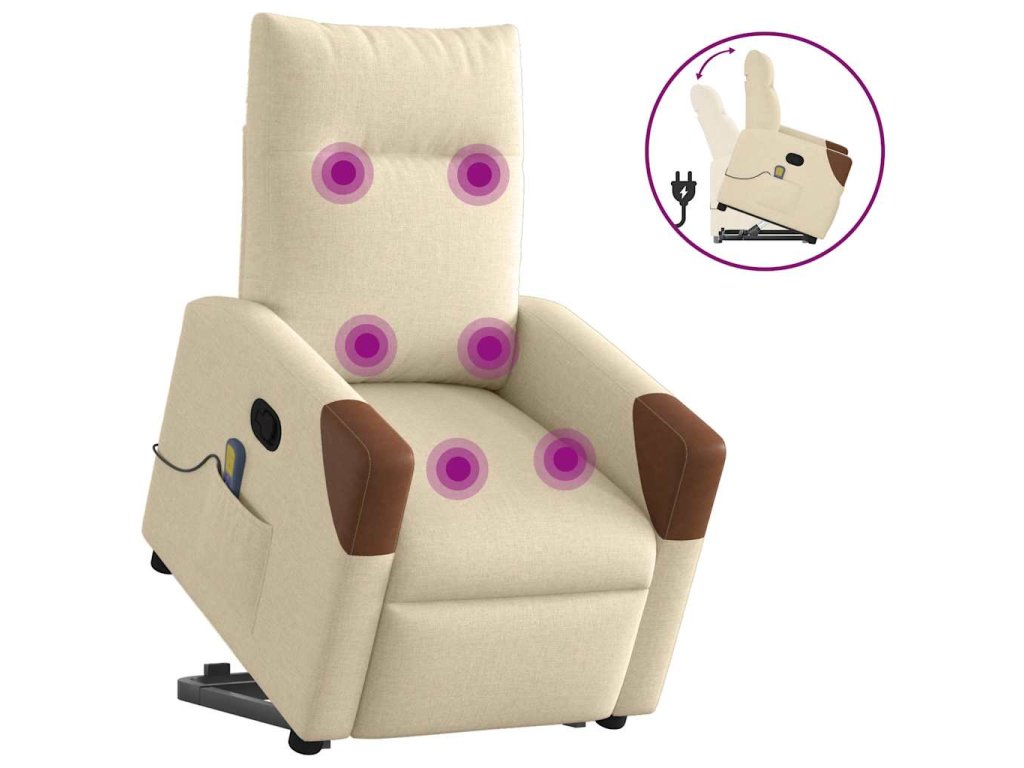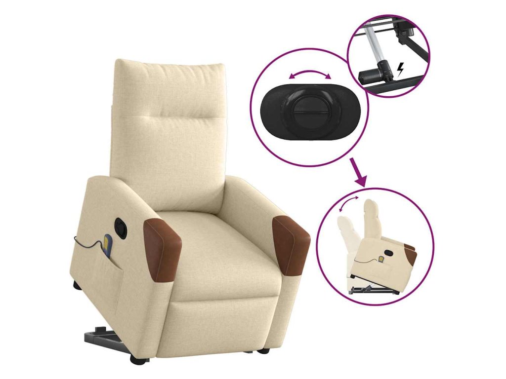 Zvedací masážní polohovací křeslo krémové textil 3324018