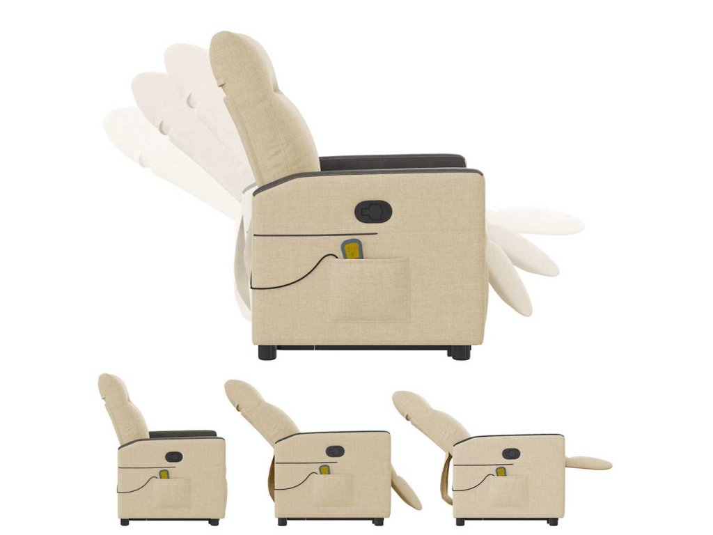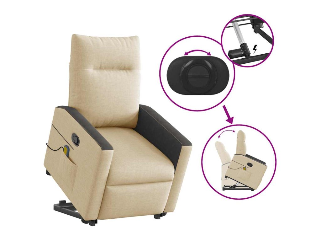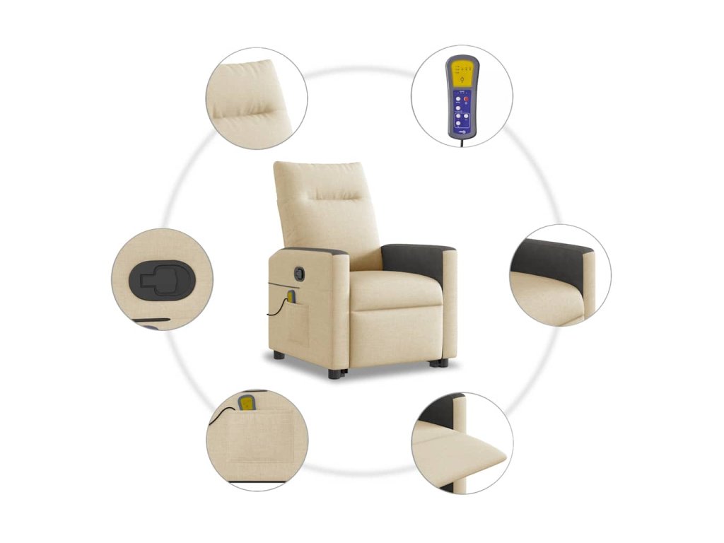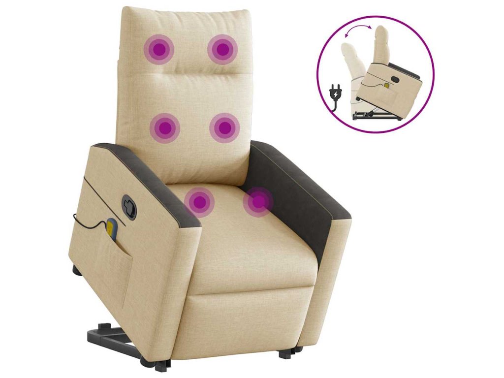 Zvedací masážní polohovací křeslo krémové textil 3324063
