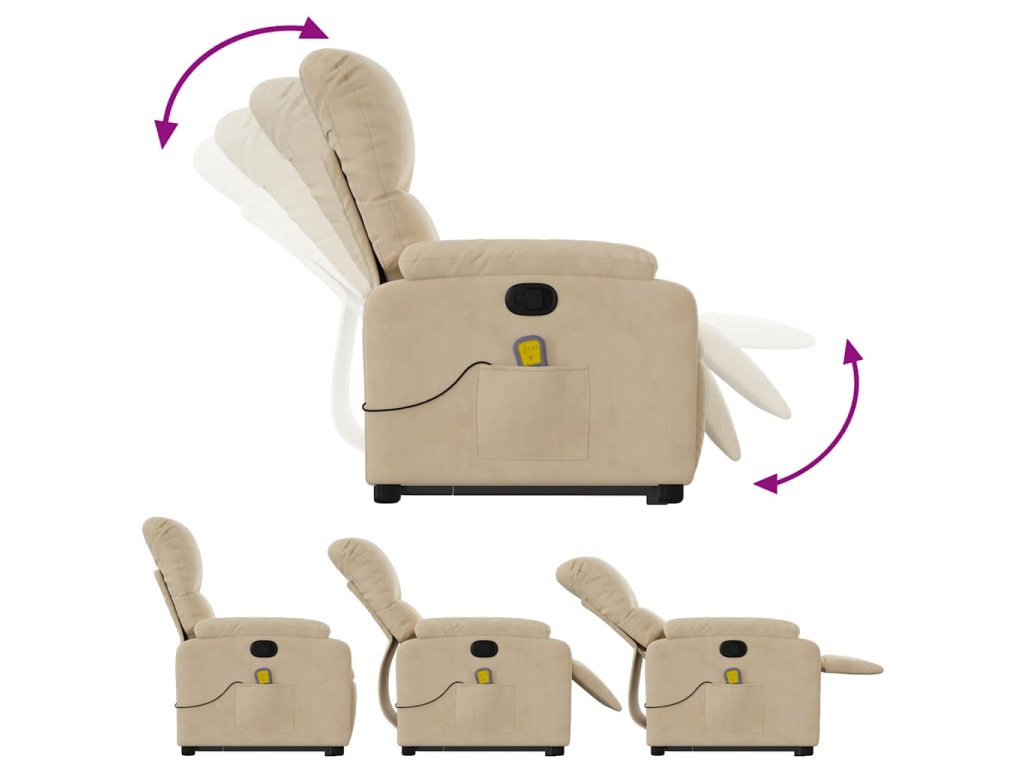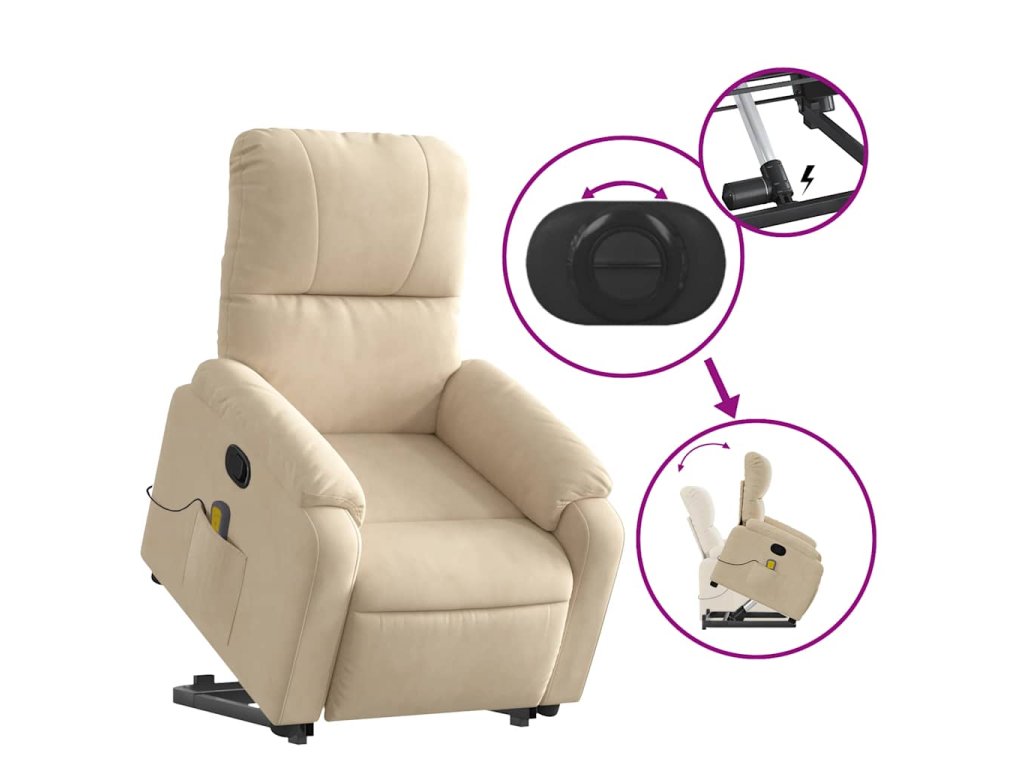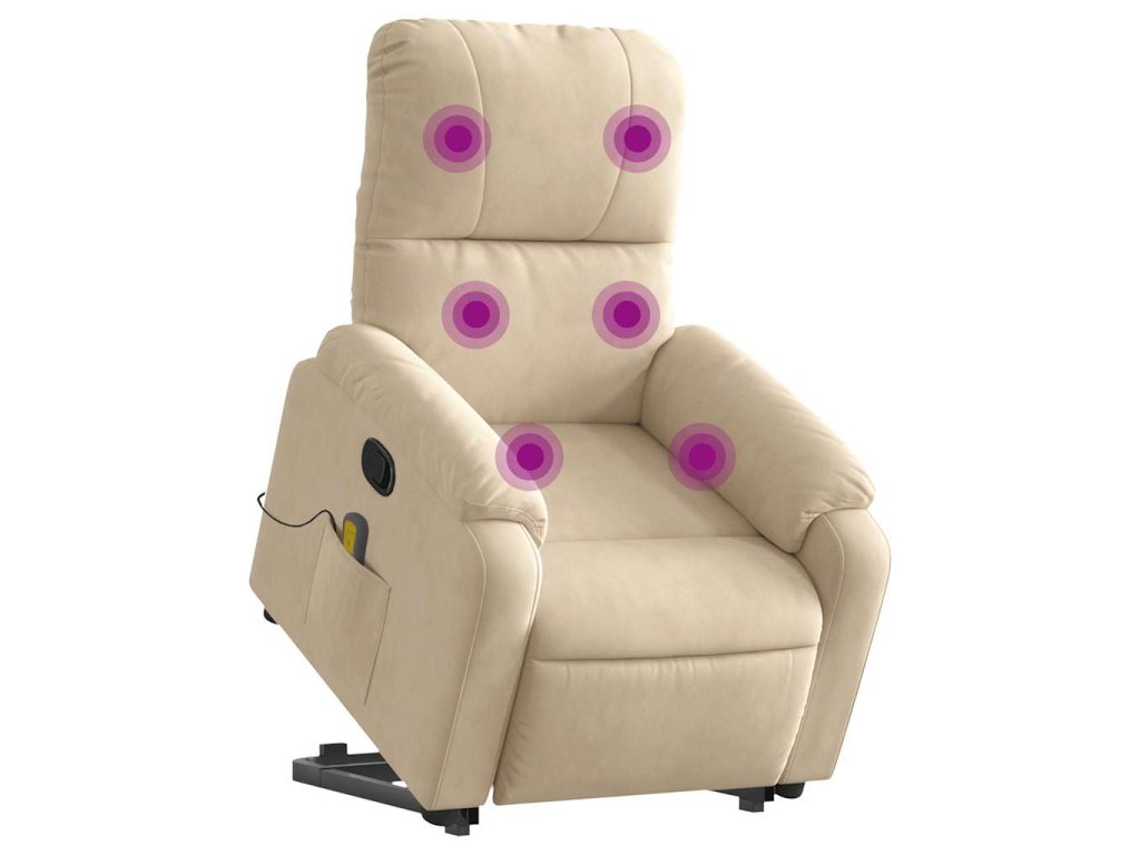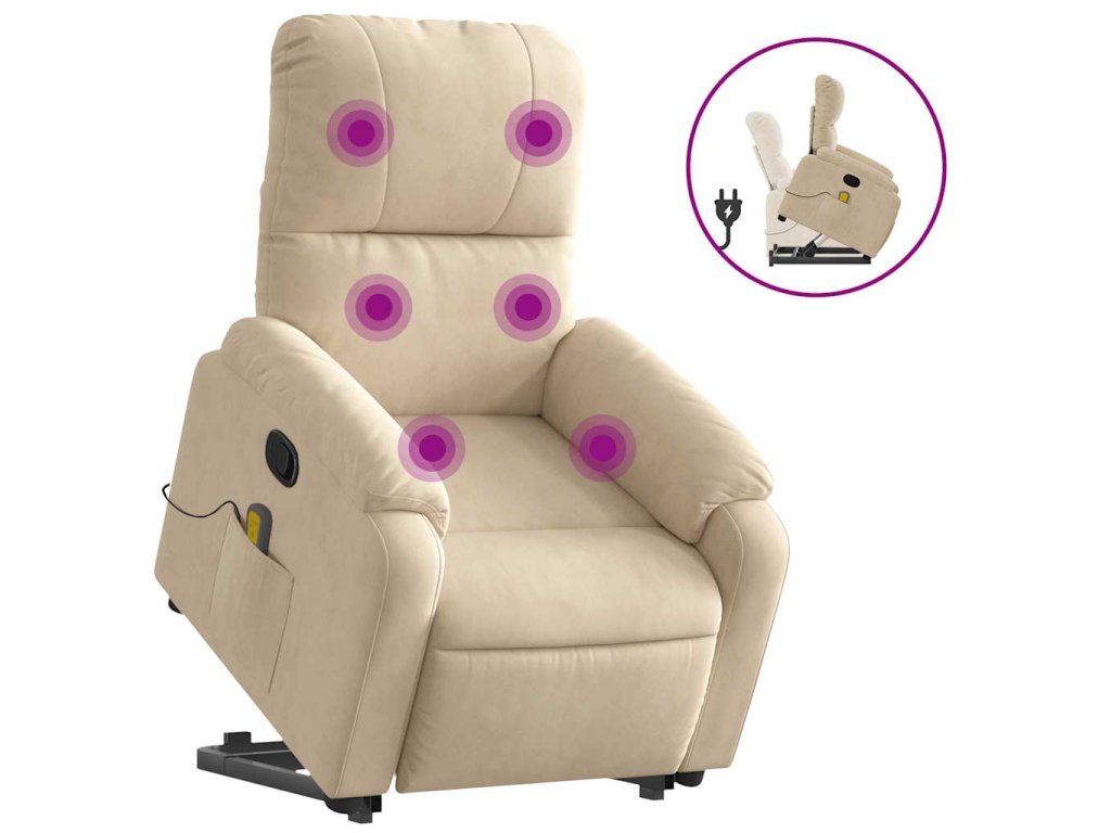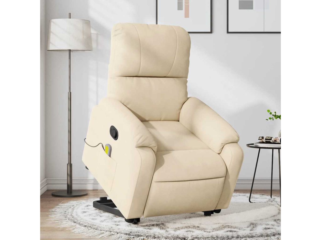 Zvedací masážní polohovací křeslo krémové tkanina z mikrovlákna 3204940