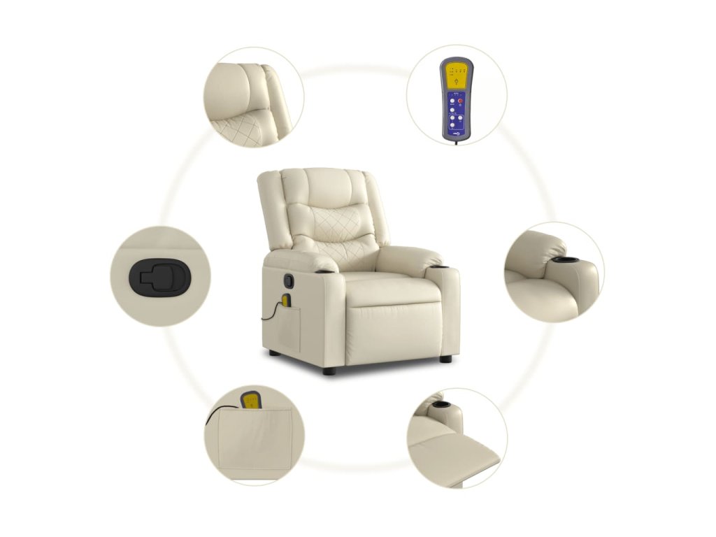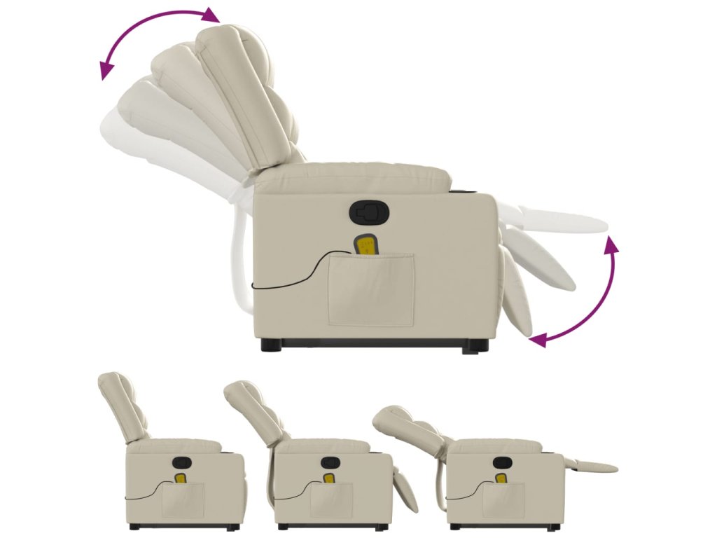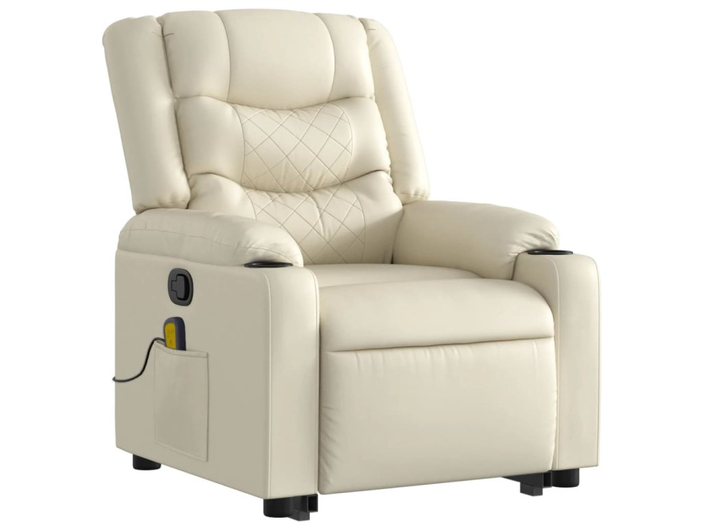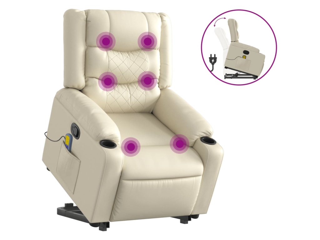 Zvedací masážní polohovací křeslo krémové umělá kůže 3206556