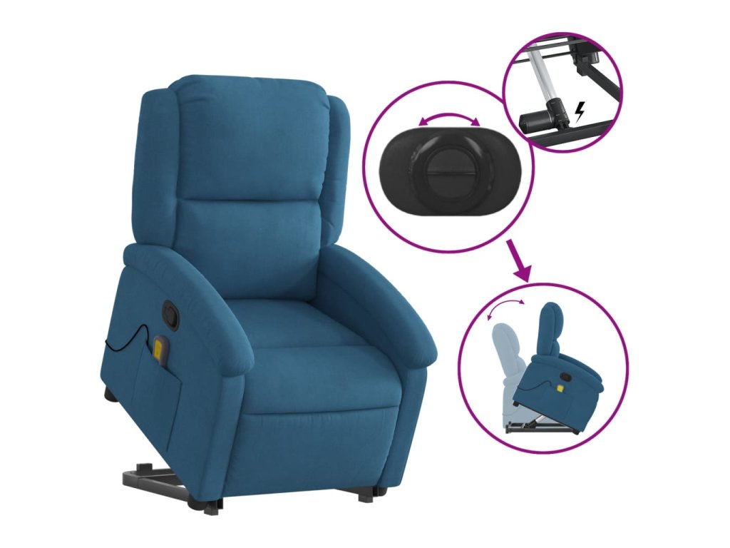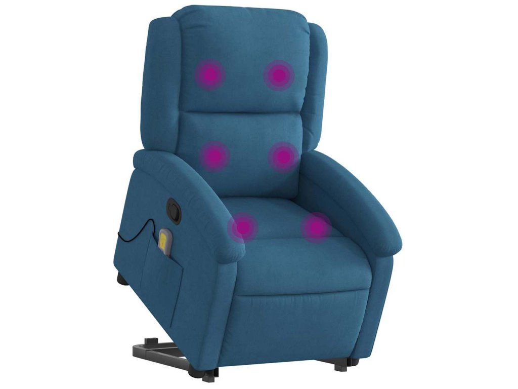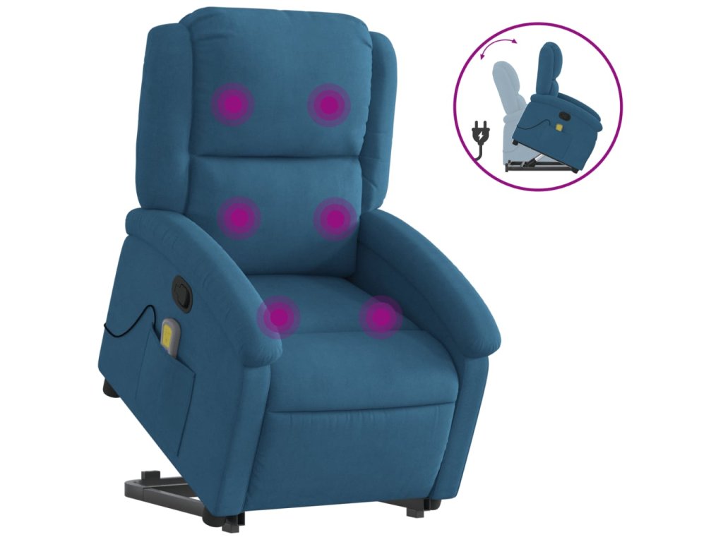 Zvedací masážní polohovací křeslo modré samet 3204321
