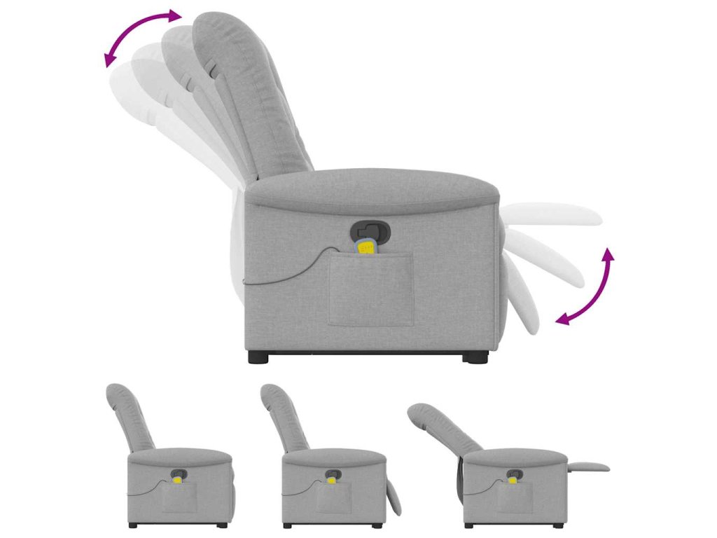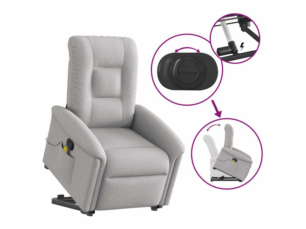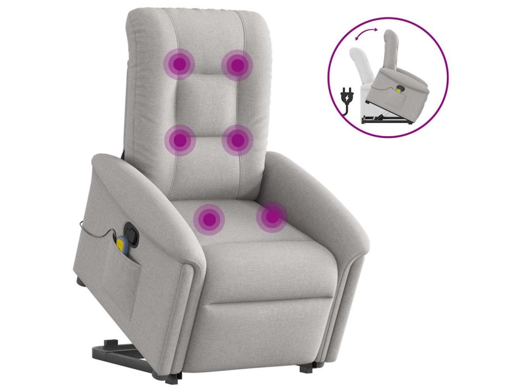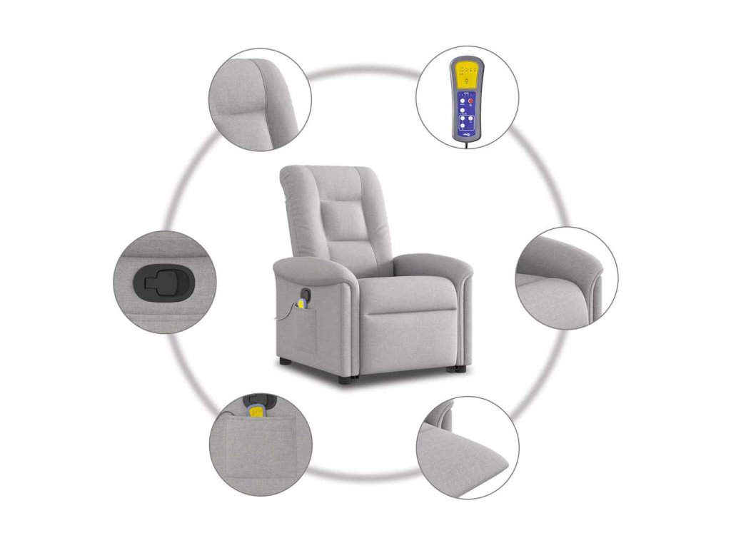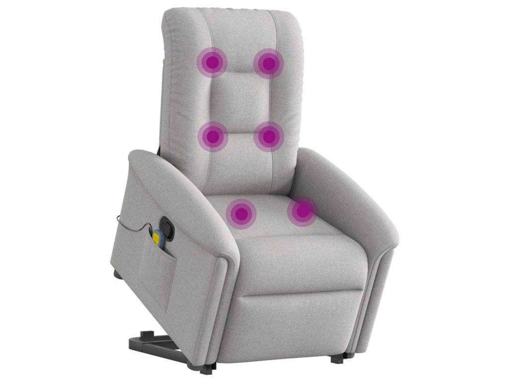 Zvedací masážní polohovací křeslo obláčkově šedé textil 3303273