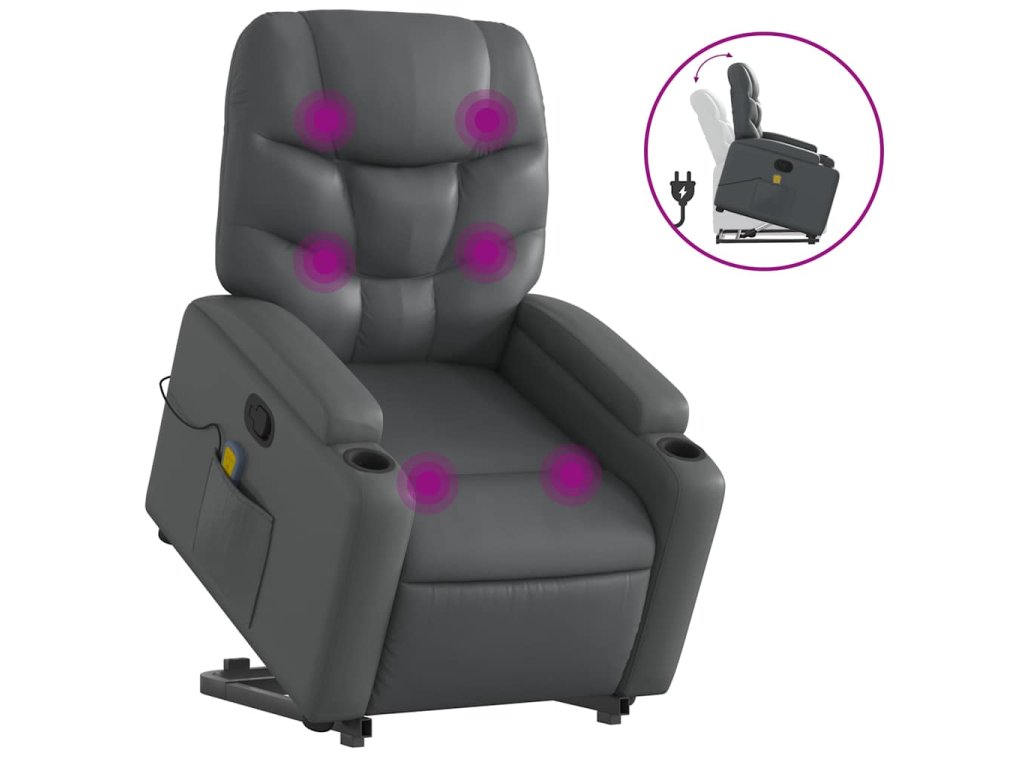 Zvedací masážní polohovací křeslo šedé umělá kůže 3204668