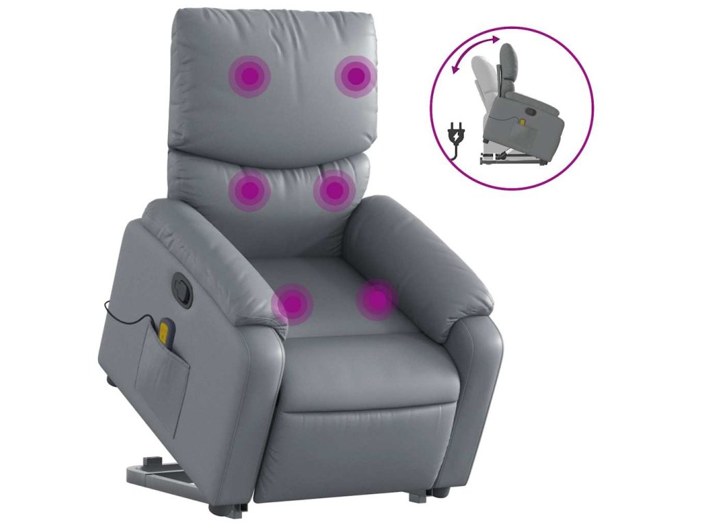 Zvedací masážní polohovací křeslo šedé umělá kůže 3204896