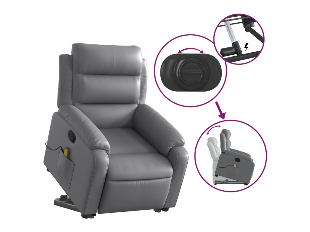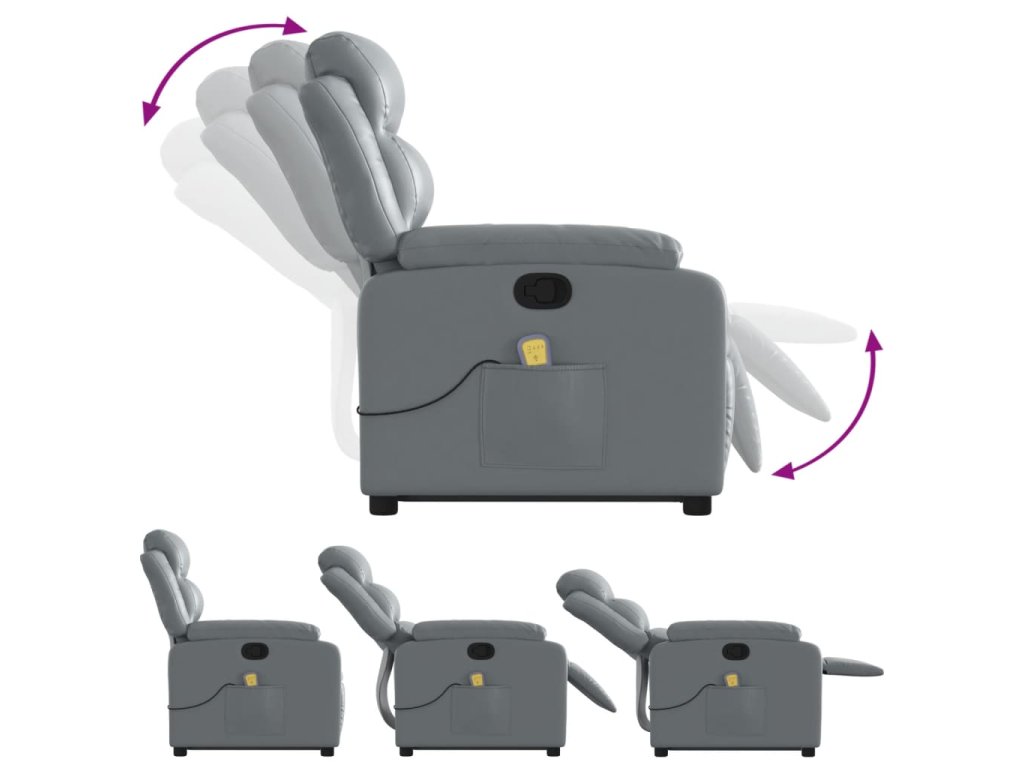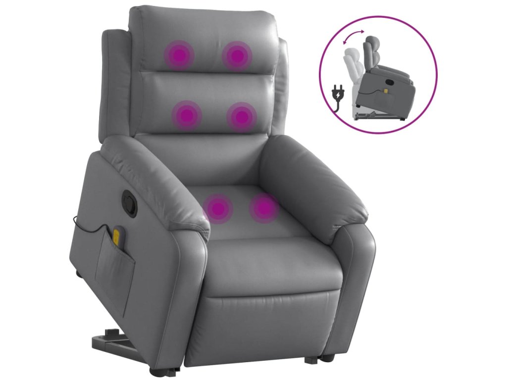Zvedací masážní polohovací křeslo šedé umělá kůže 3205052