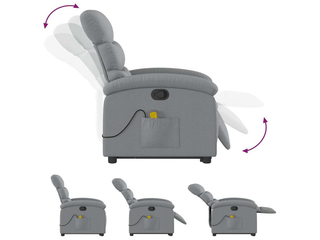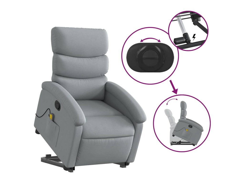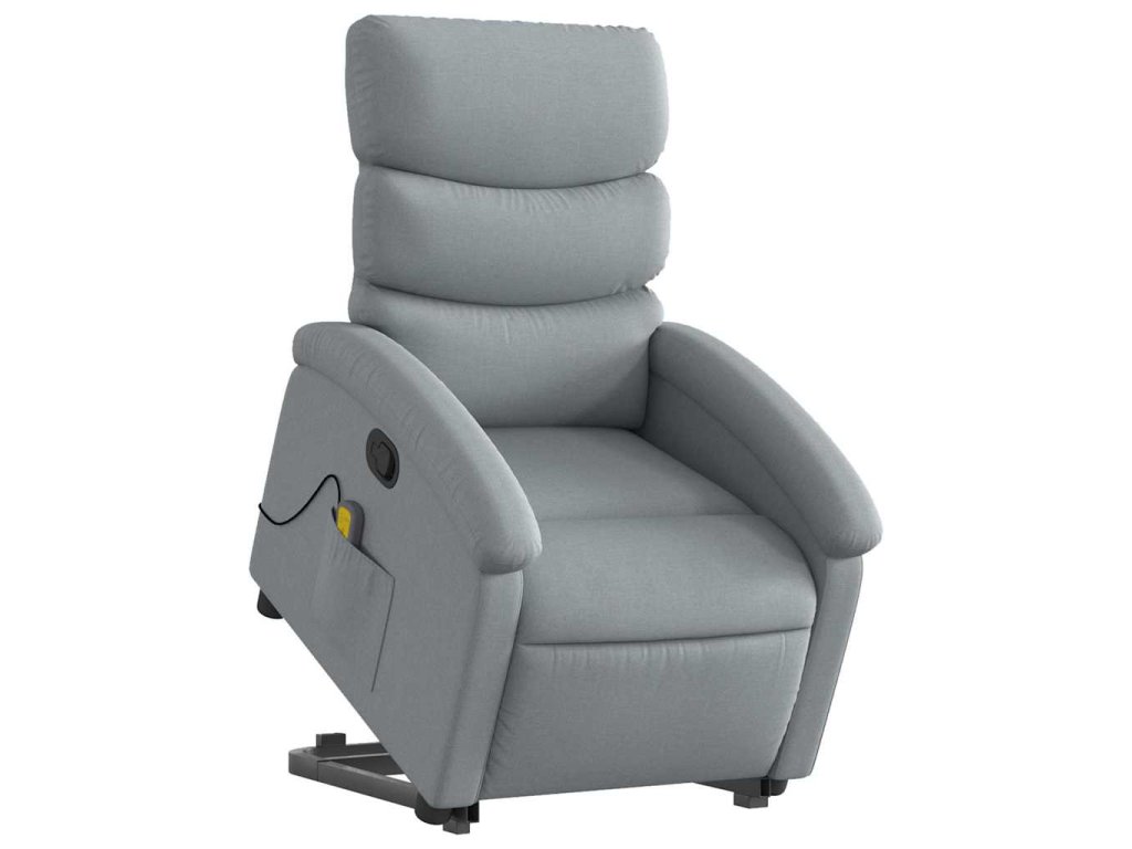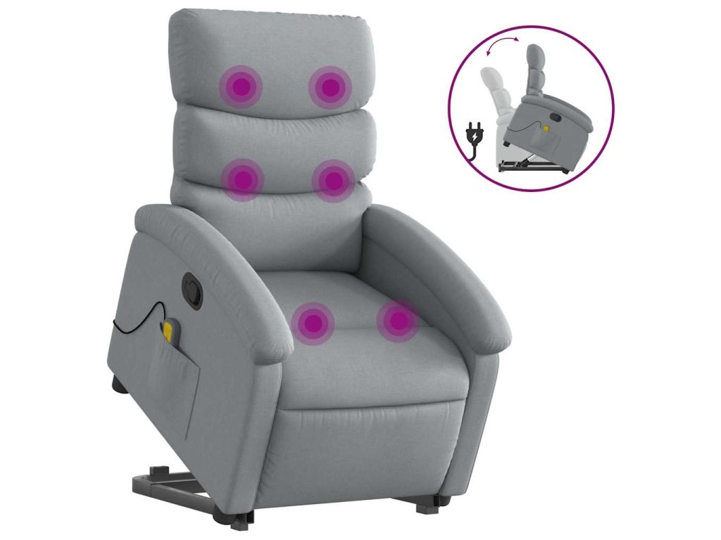 Zvedací masážní polohovací křeslo světle šedé textil 3203990
