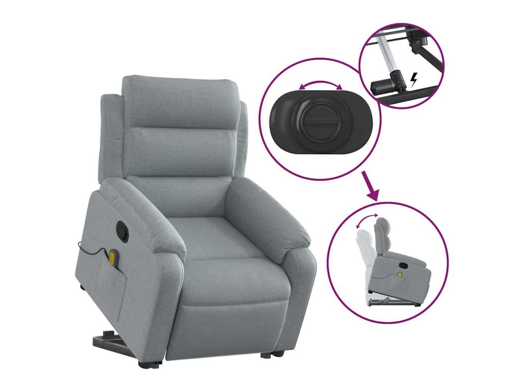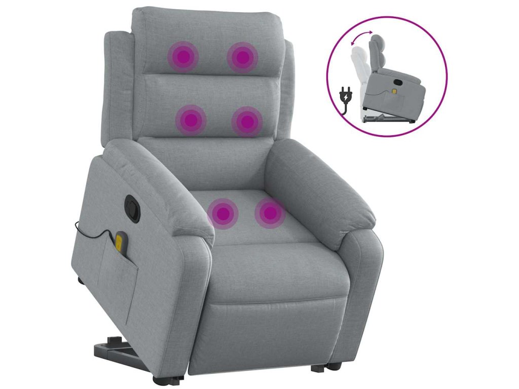 Zvedací masážní polohovací křeslo světle šedé textil 3204992