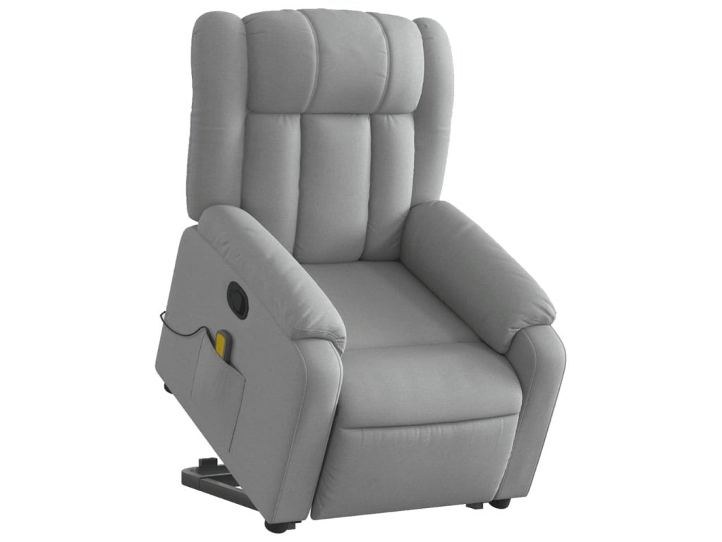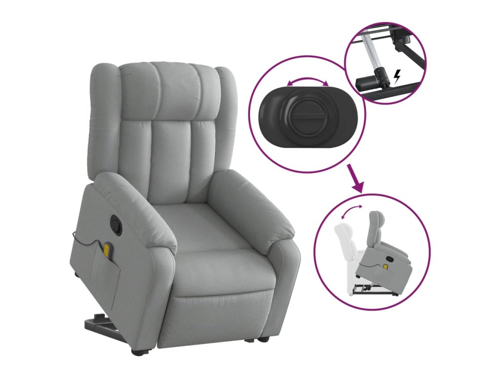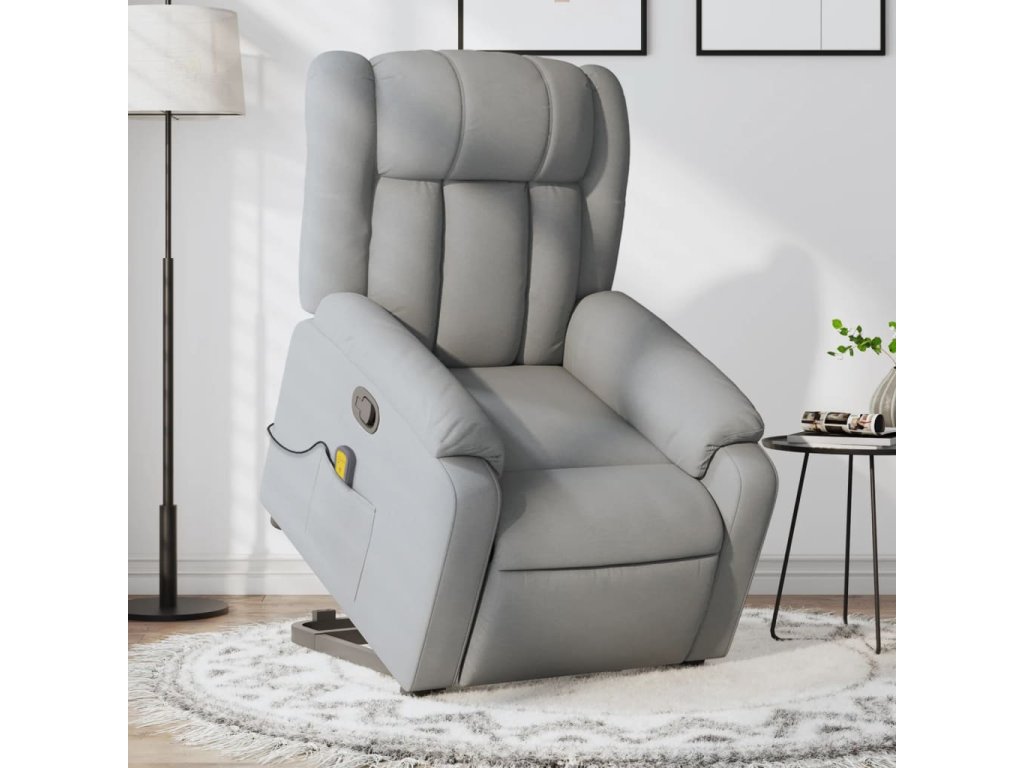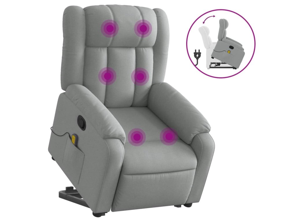 Zvedací masážní polohovací křeslo světle šedé textil 3205328