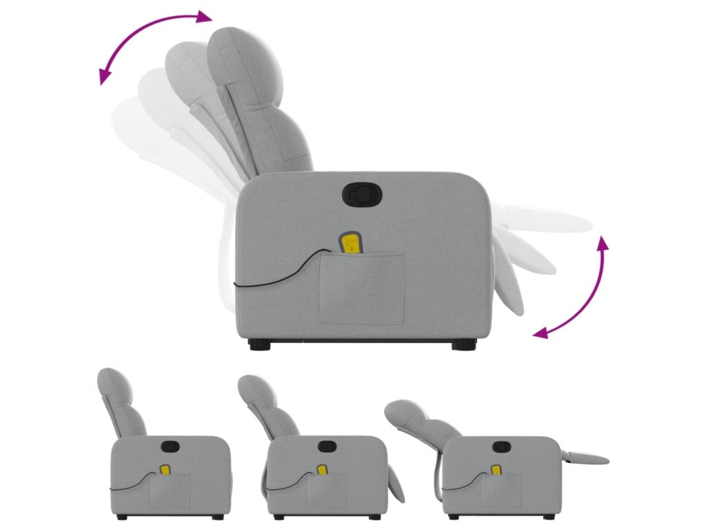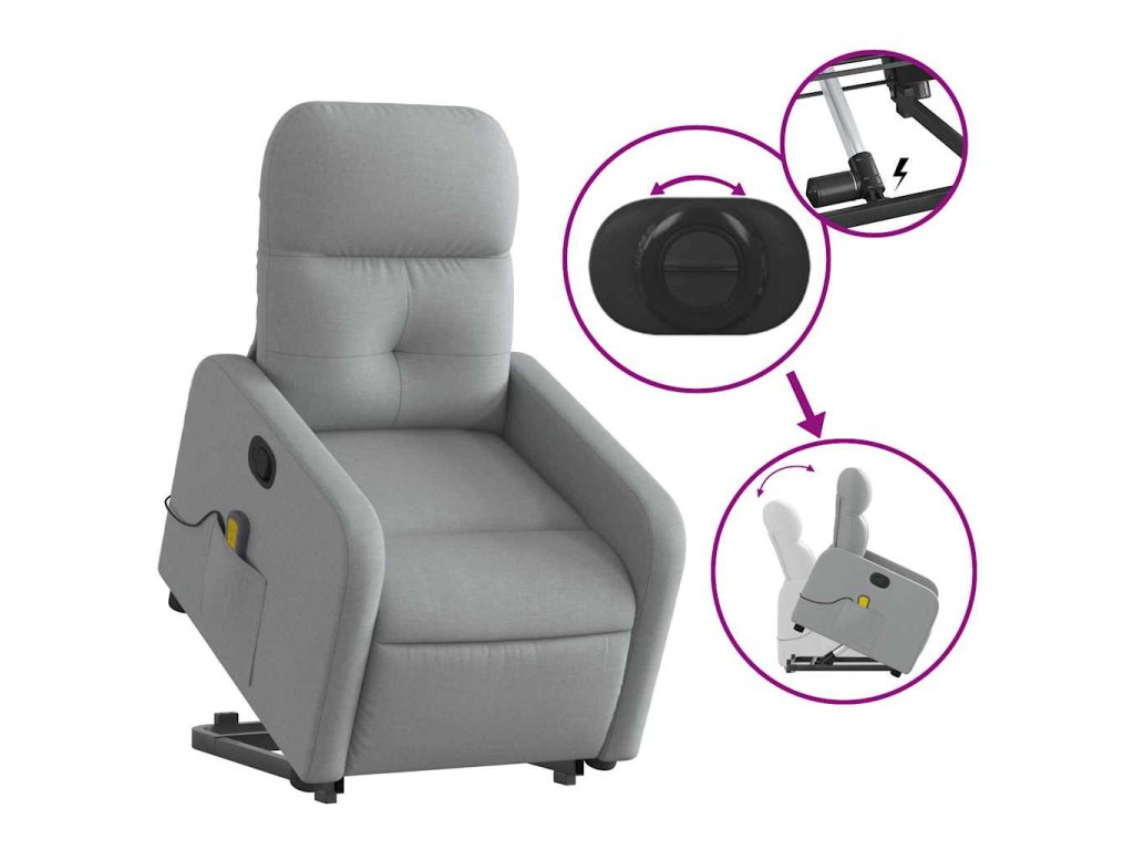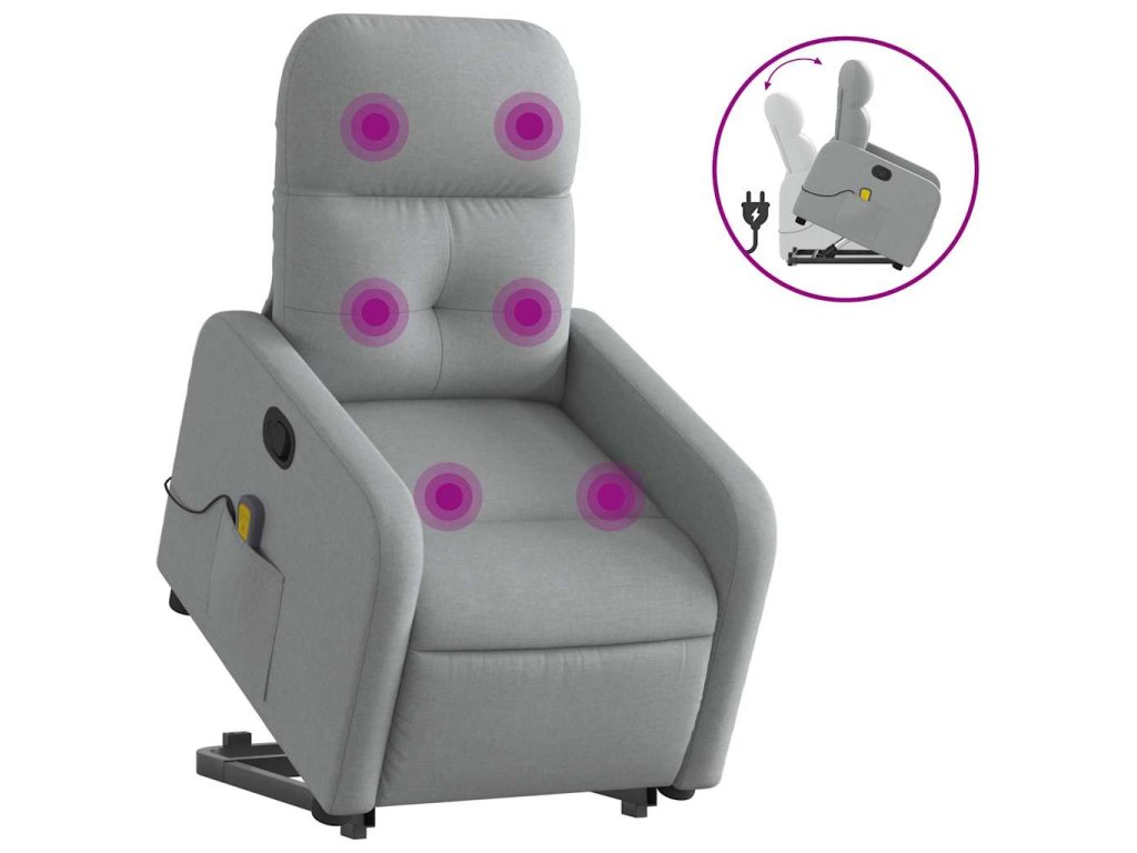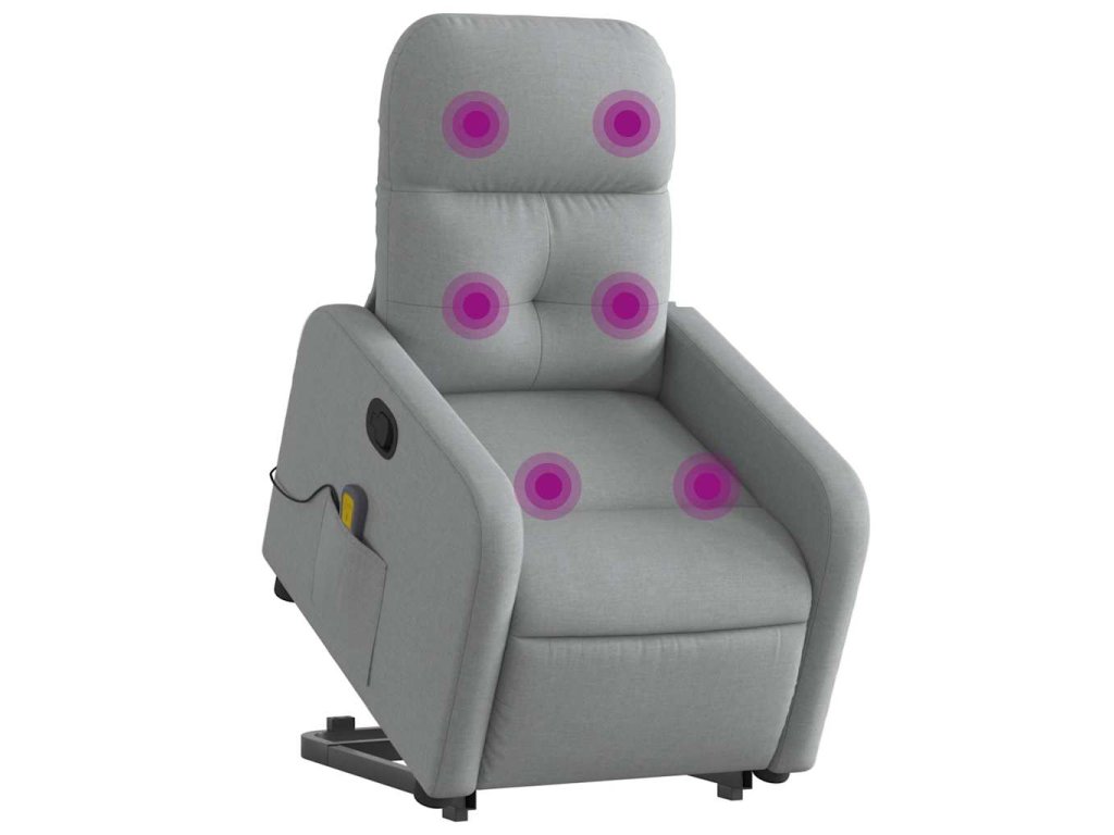 Zvedací masážní polohovací křeslo světle šedé textil 3206804