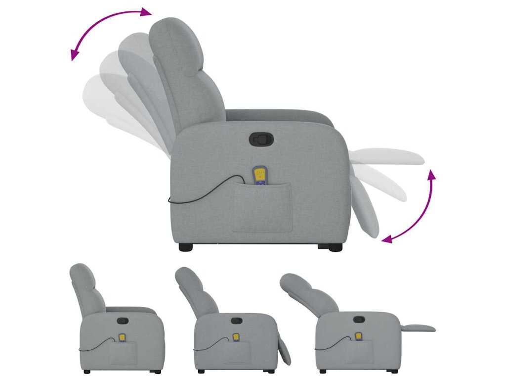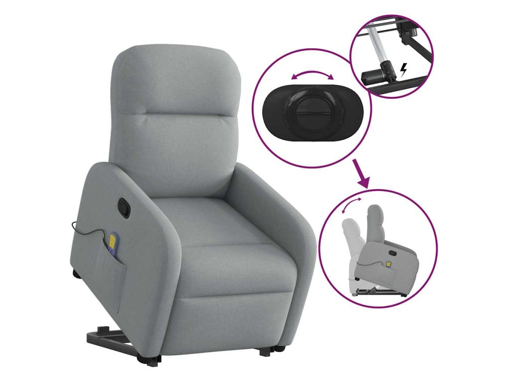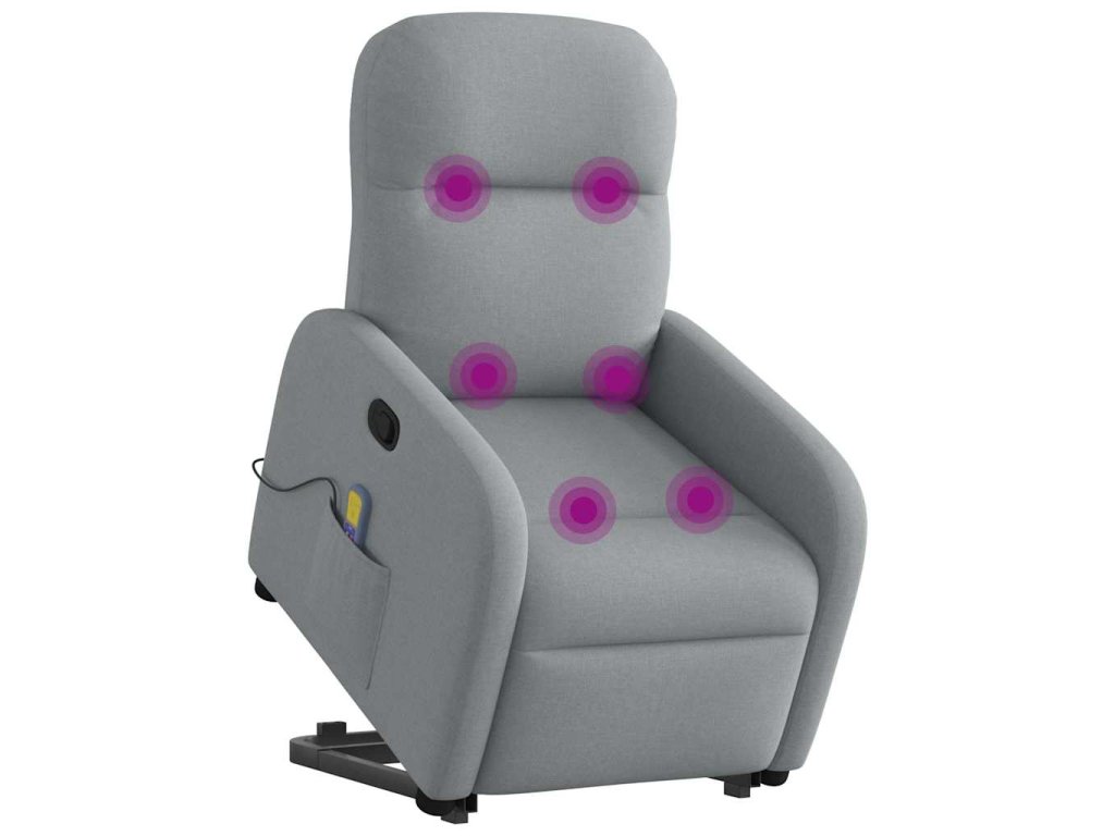Zvedací masážní polohovací křeslo světle šedé textil 3302982