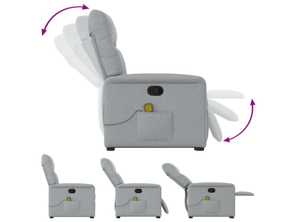 Zvedací masážní polohovací křeslo světle šedé textil 3303042