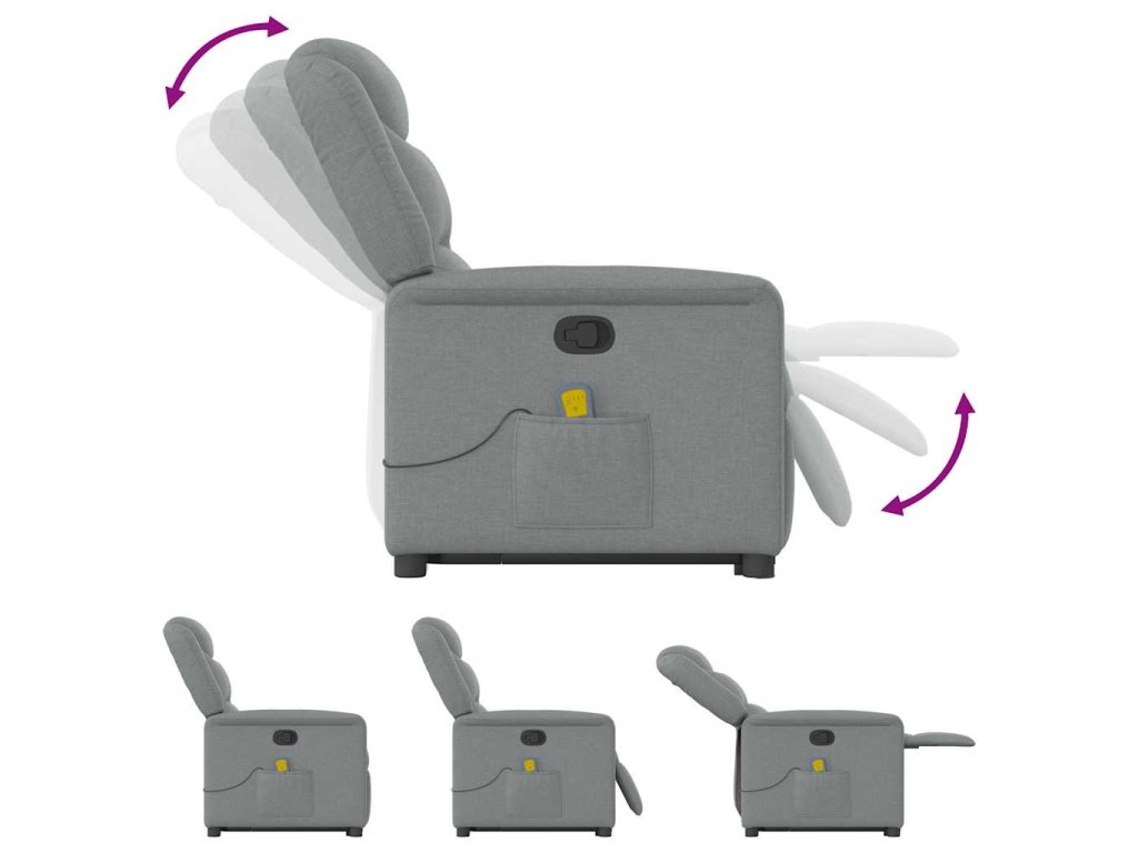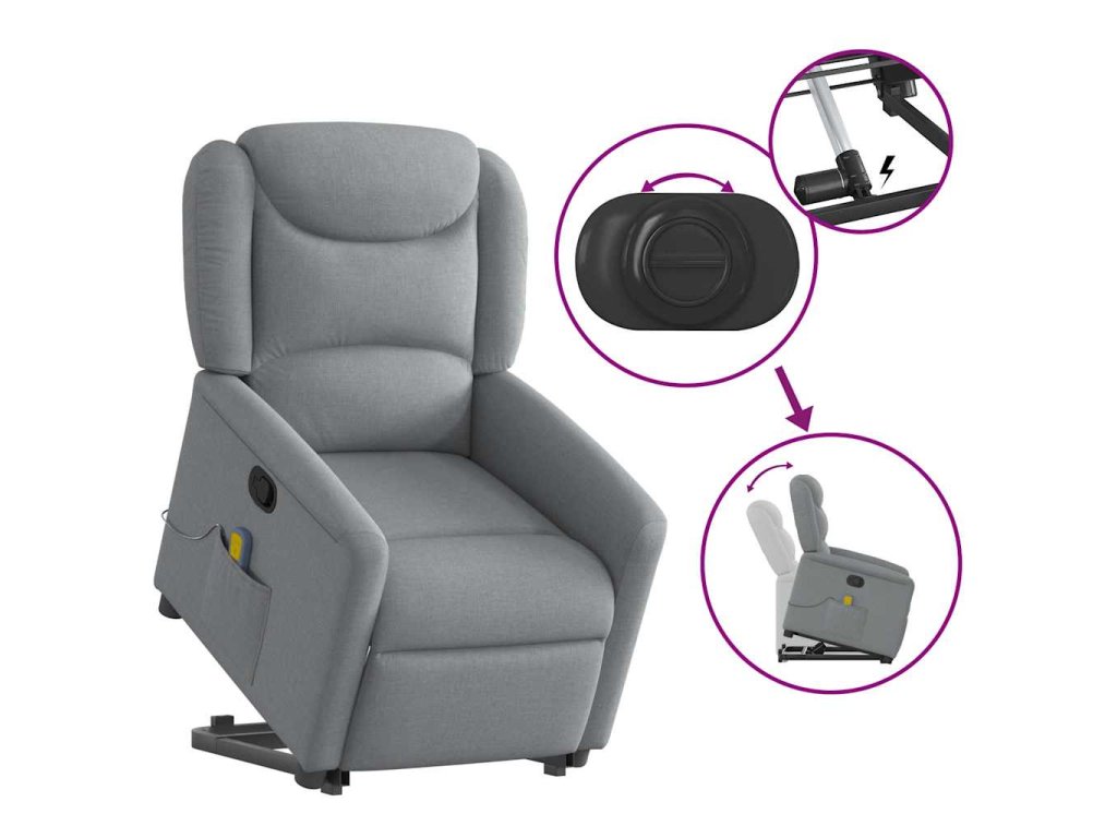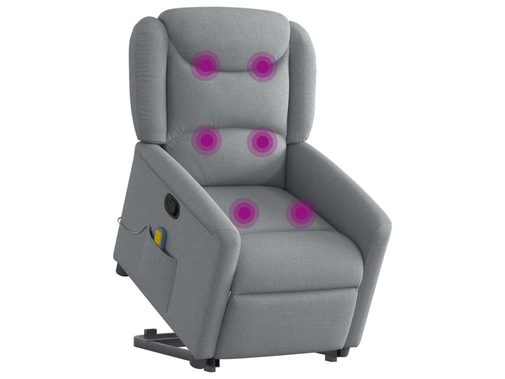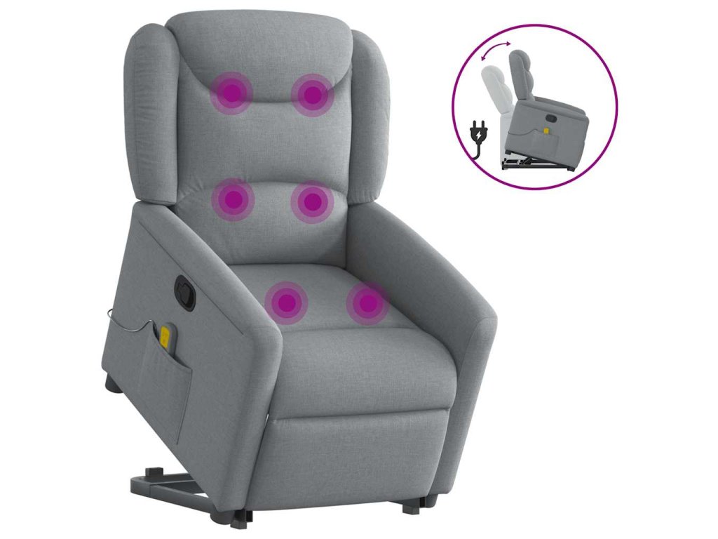 Zvedací masážní polohovací křeslo světle šedé textil 3303204