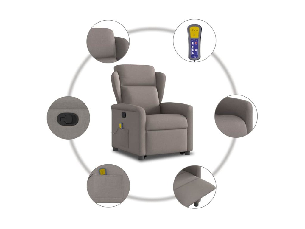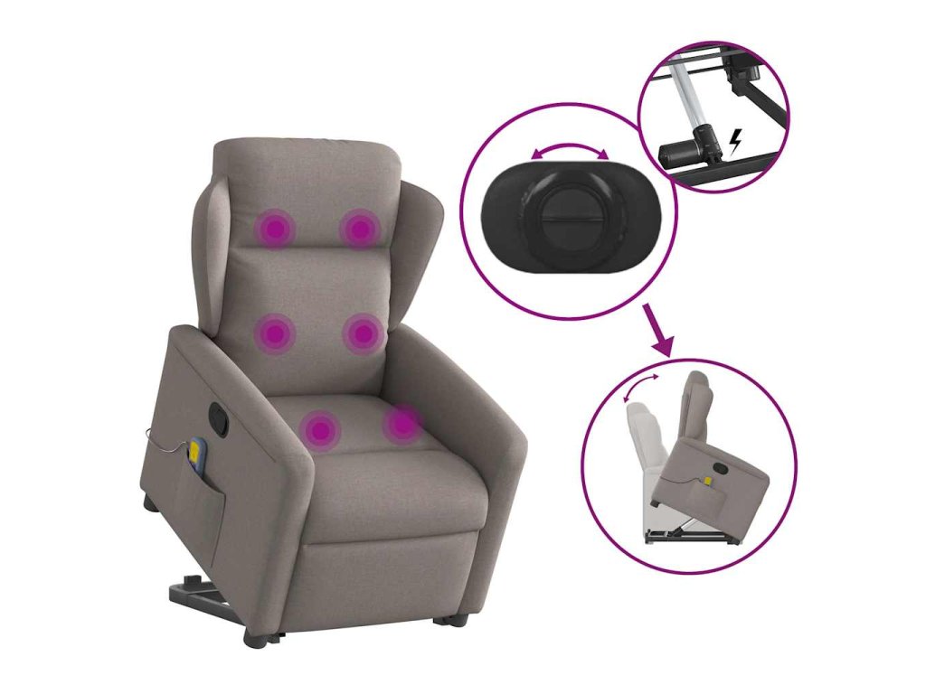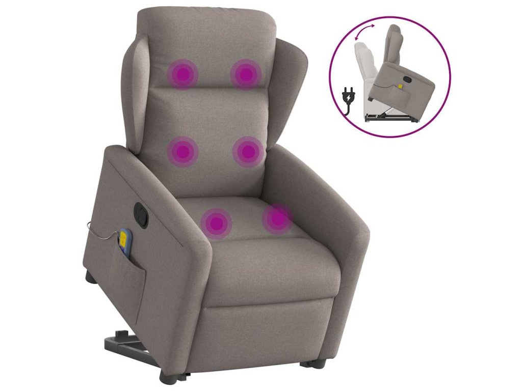 Zvedací masážní polohovací křeslo taupe textil 3303151