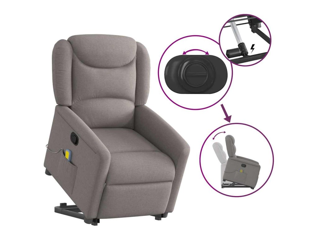 Zvedací masážní polohovací křeslo taupe textil 3303211