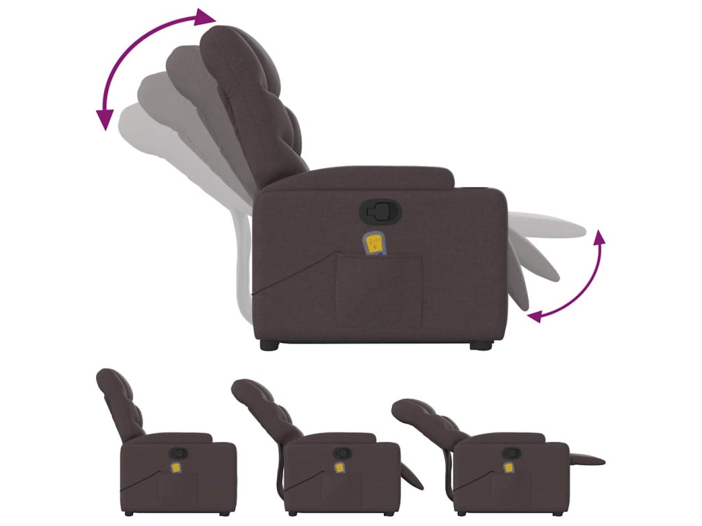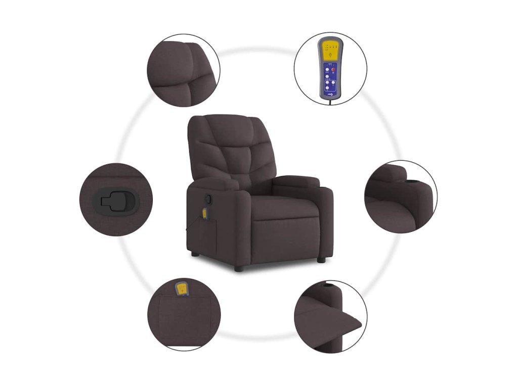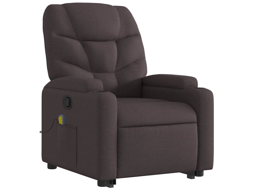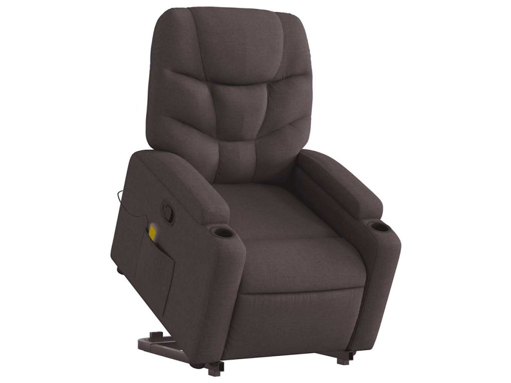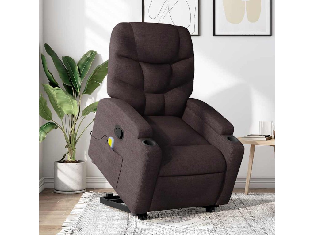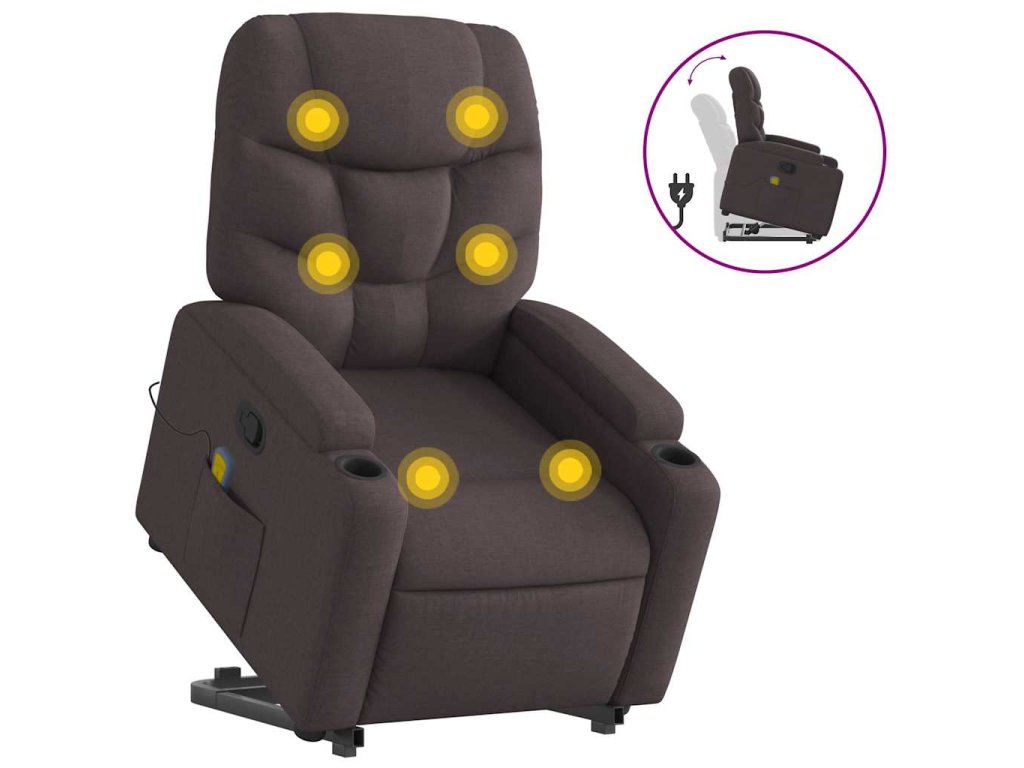 Zvedací masážní polohovací křeslo tmavě hnědé textil 3204613