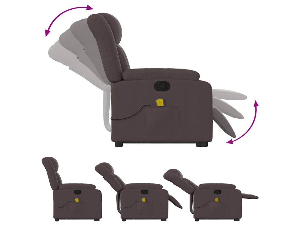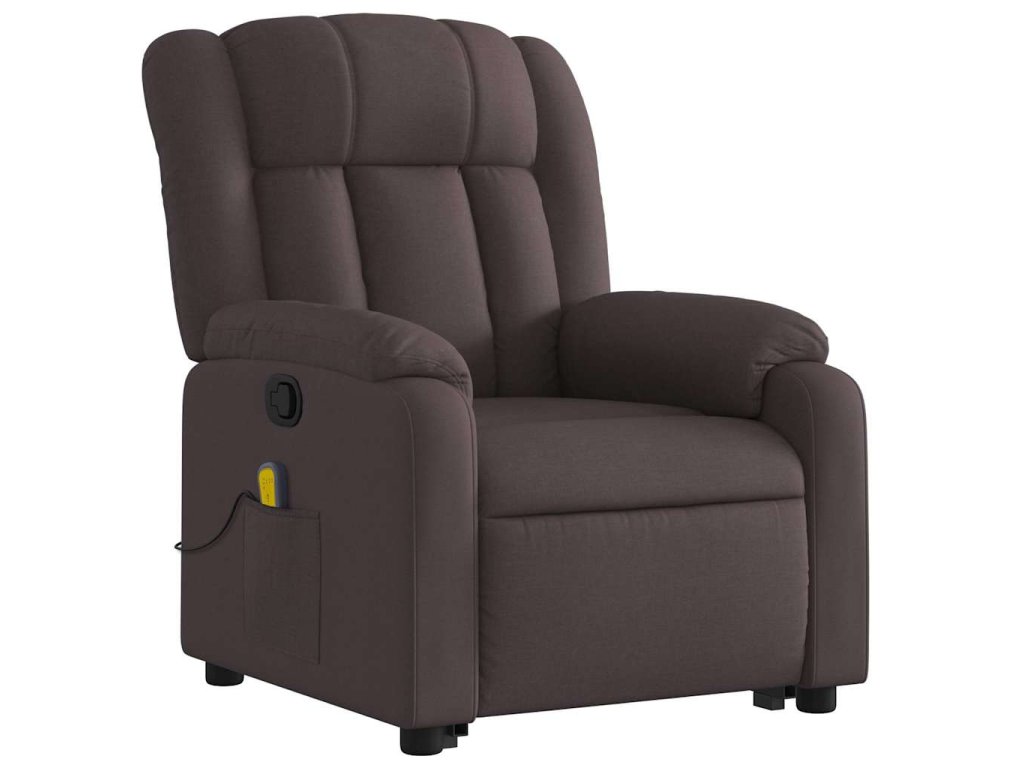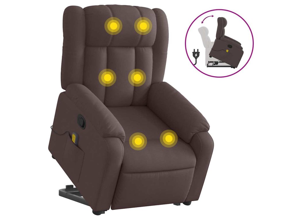 Zvedací masážní polohovací křeslo tmavě hnědé textil 3205333