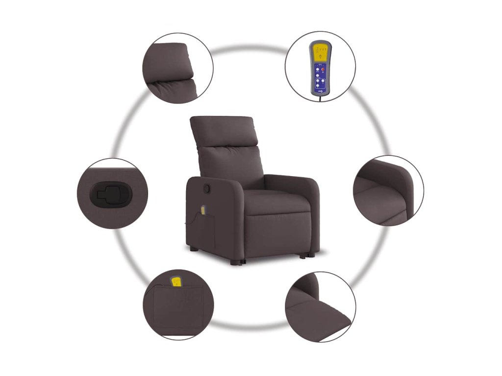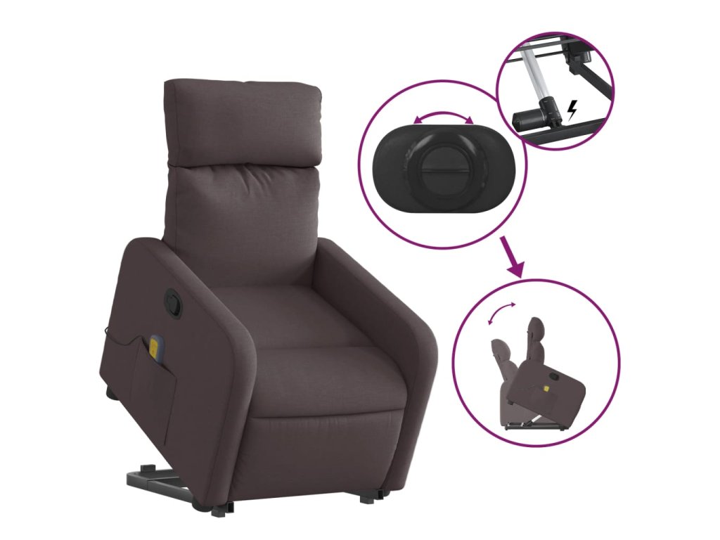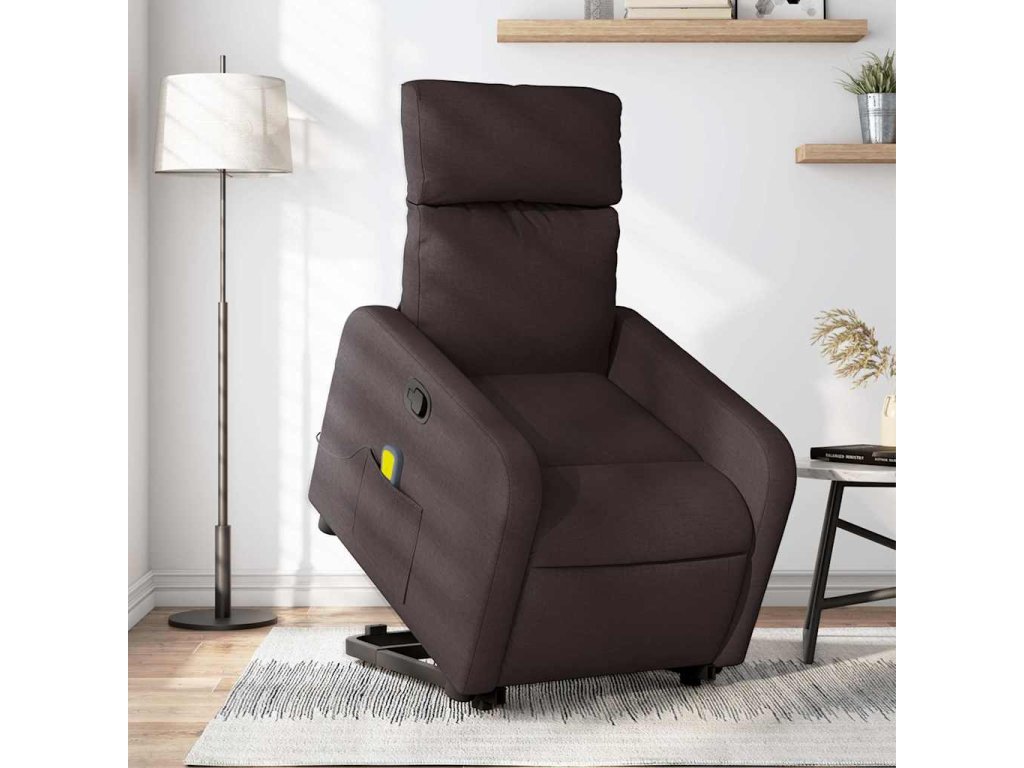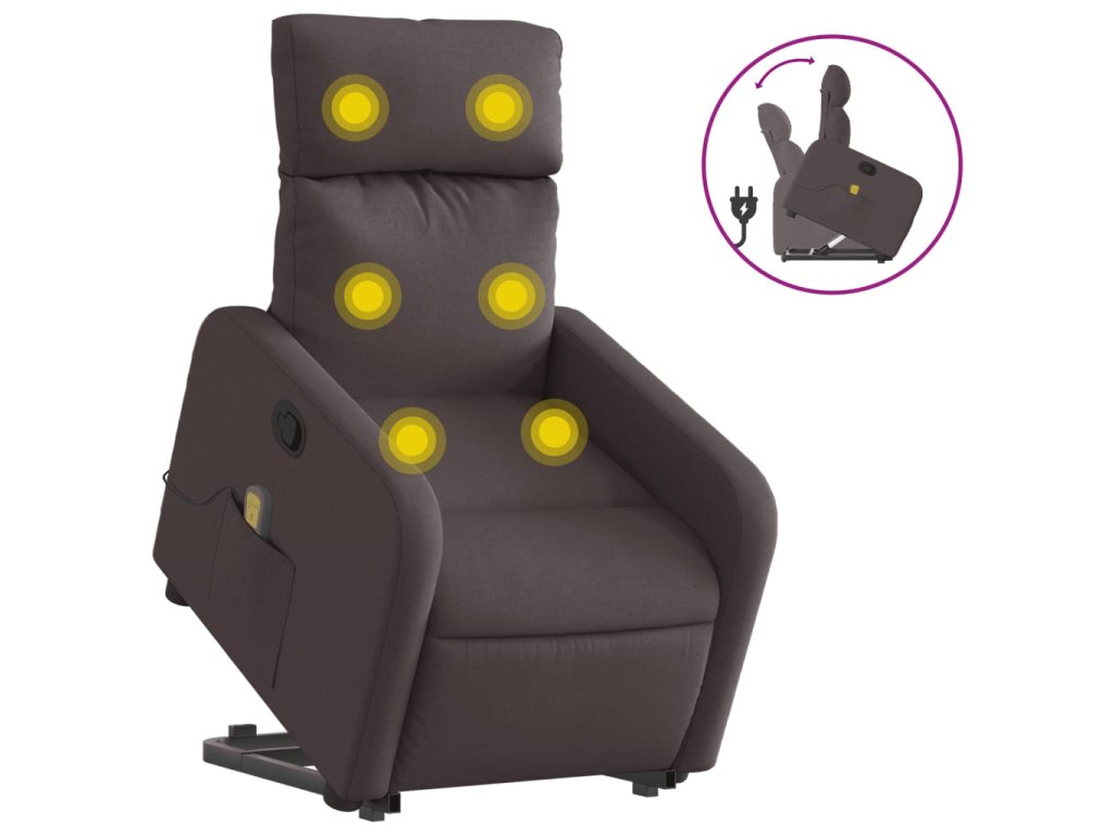Zvedací masážní polohovací křeslo tmavě hnědé textil 3206713