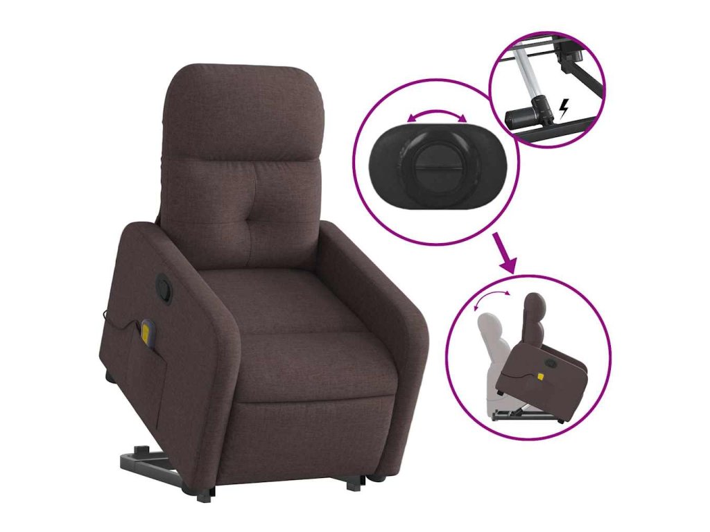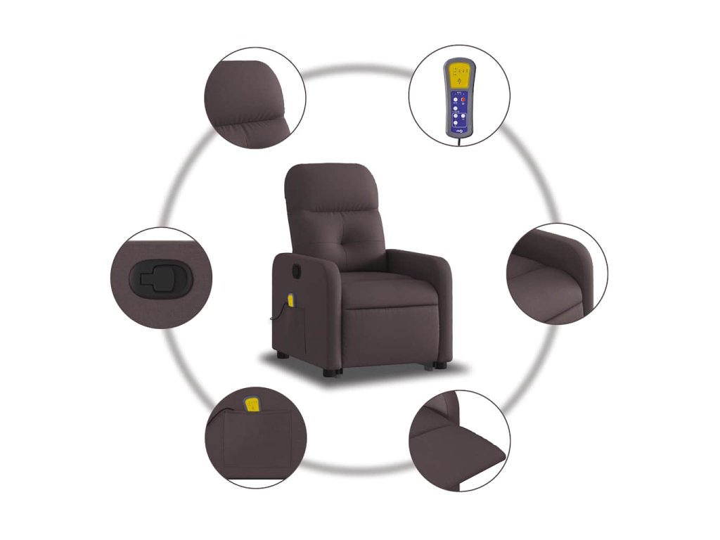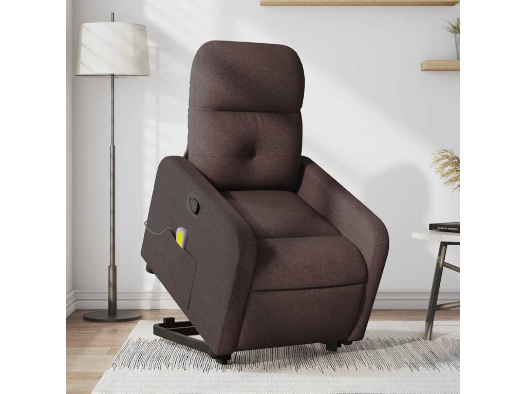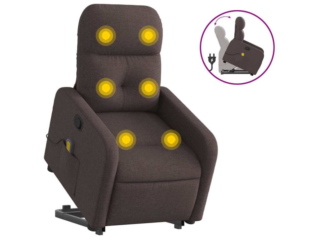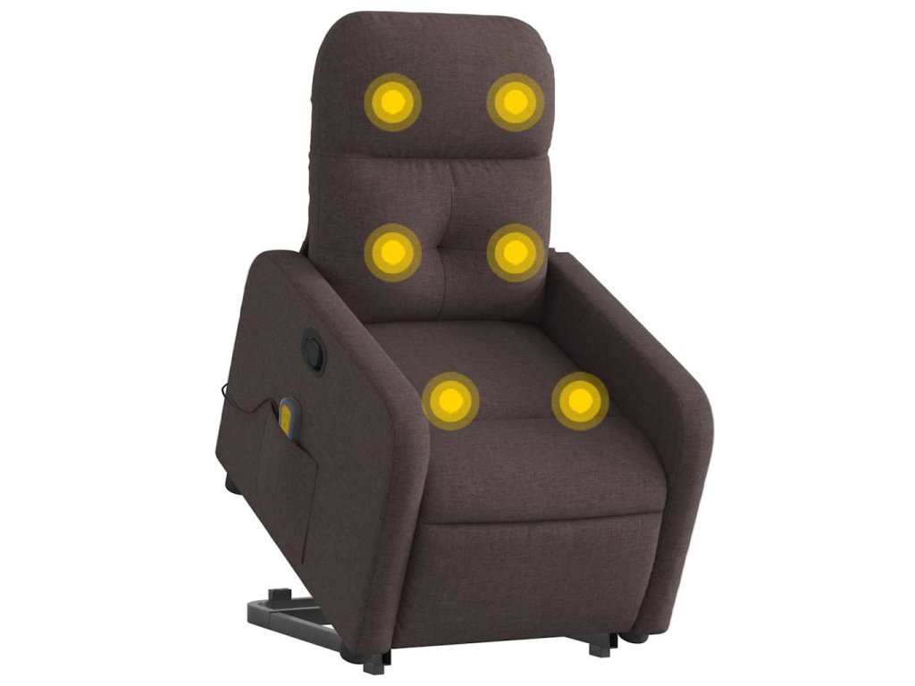 Zvedací masážní polohovací křeslo tmavě hnědé textil 3206809
