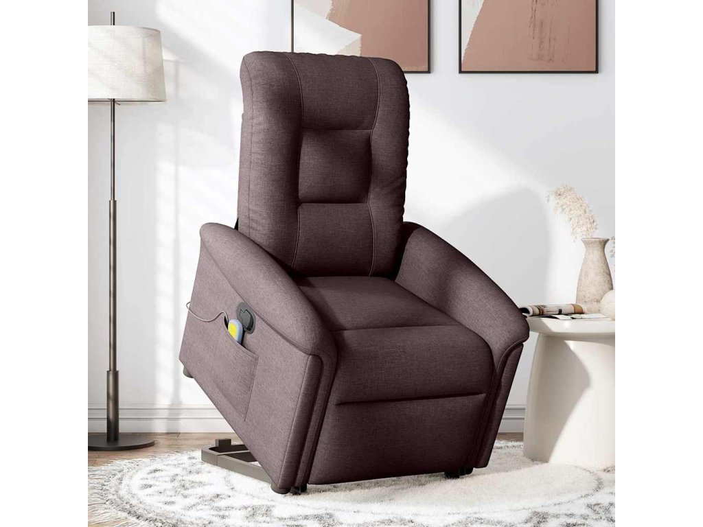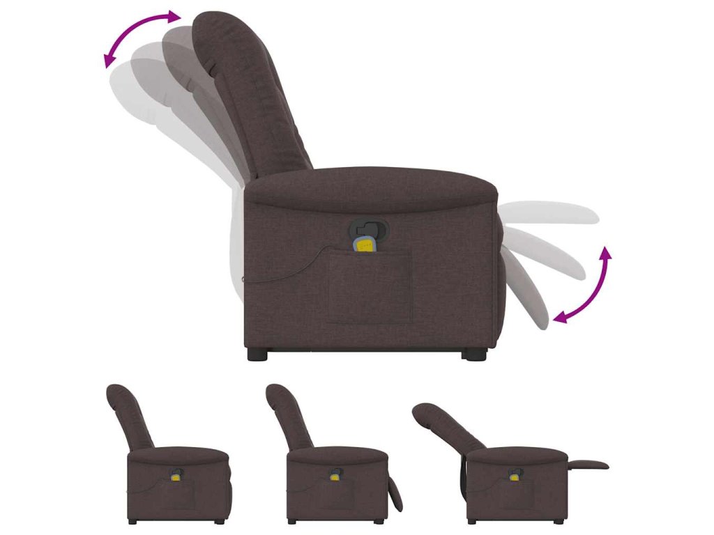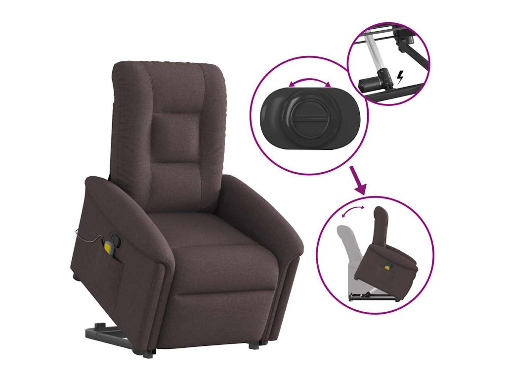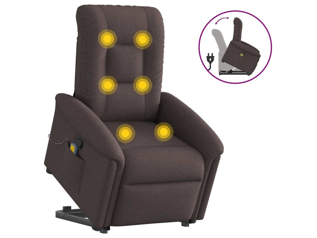 Zvedací masážní polohovací křeslo tmavě hnědé textil 3303269