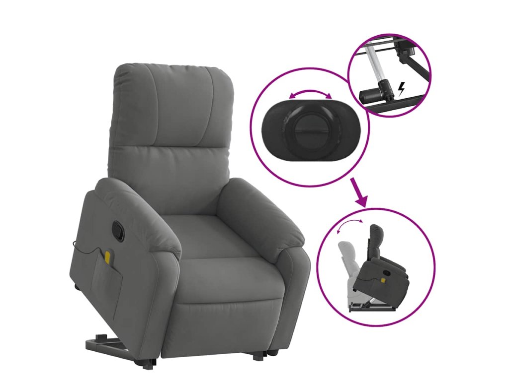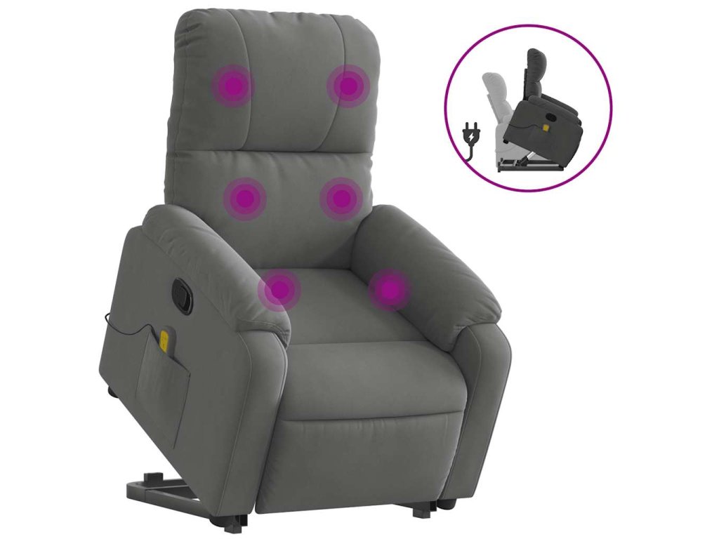 Zvedací masážní polohovací křeslo tmavě šedé mikrovlákno 3204938