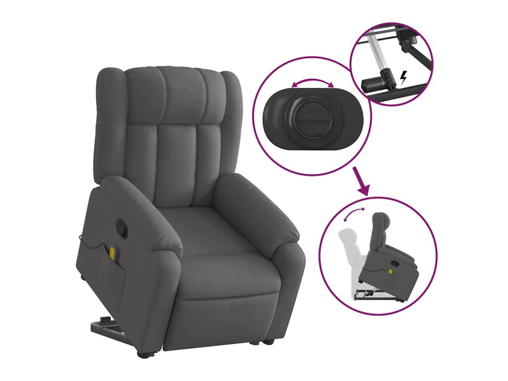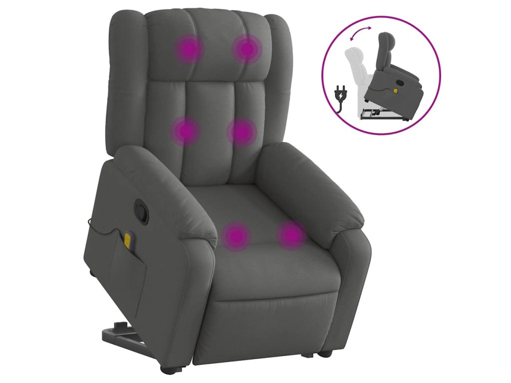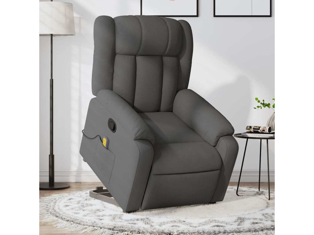 Zvedací masážní polohovací křeslo tmavě šedé textil 3205329