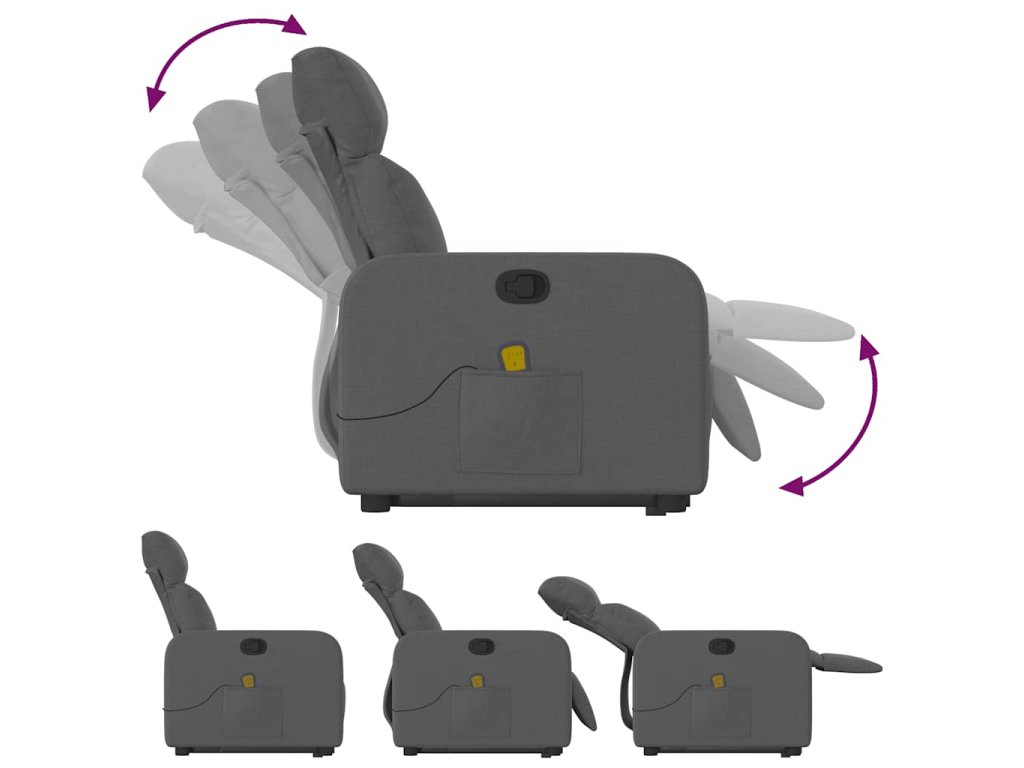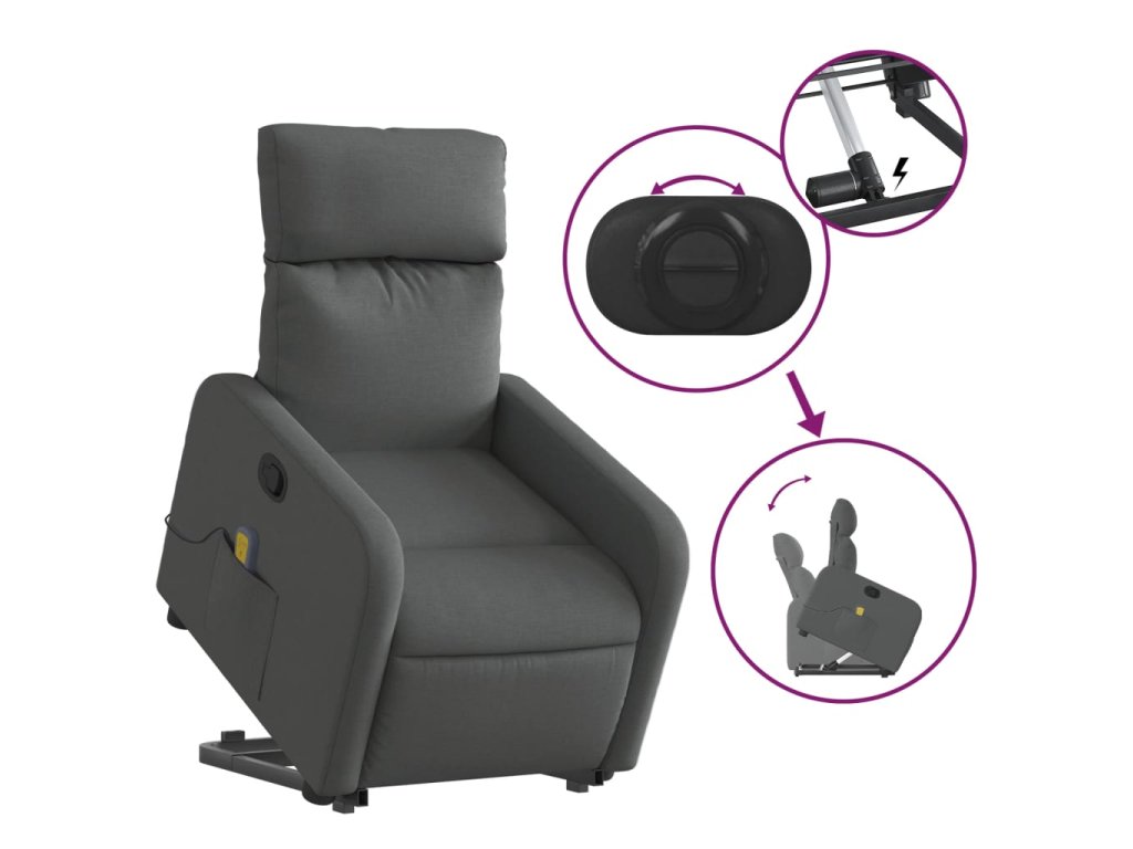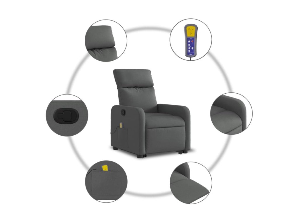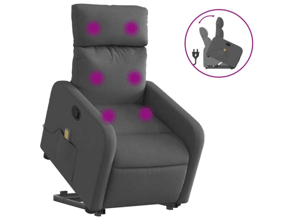 Zvedací masážní polohovací křeslo tmavě šedé textil 3206709