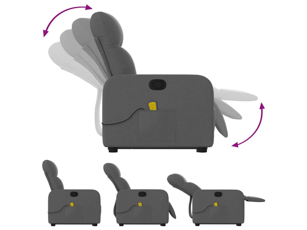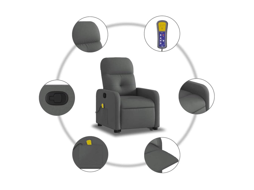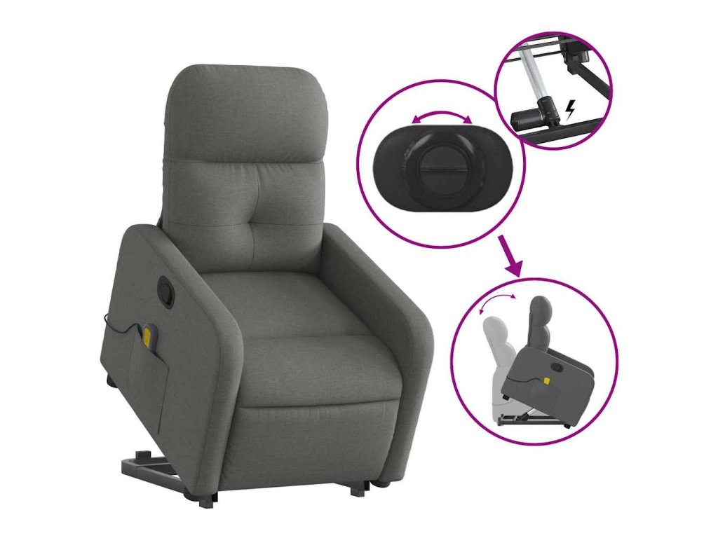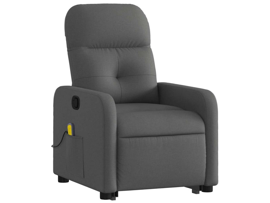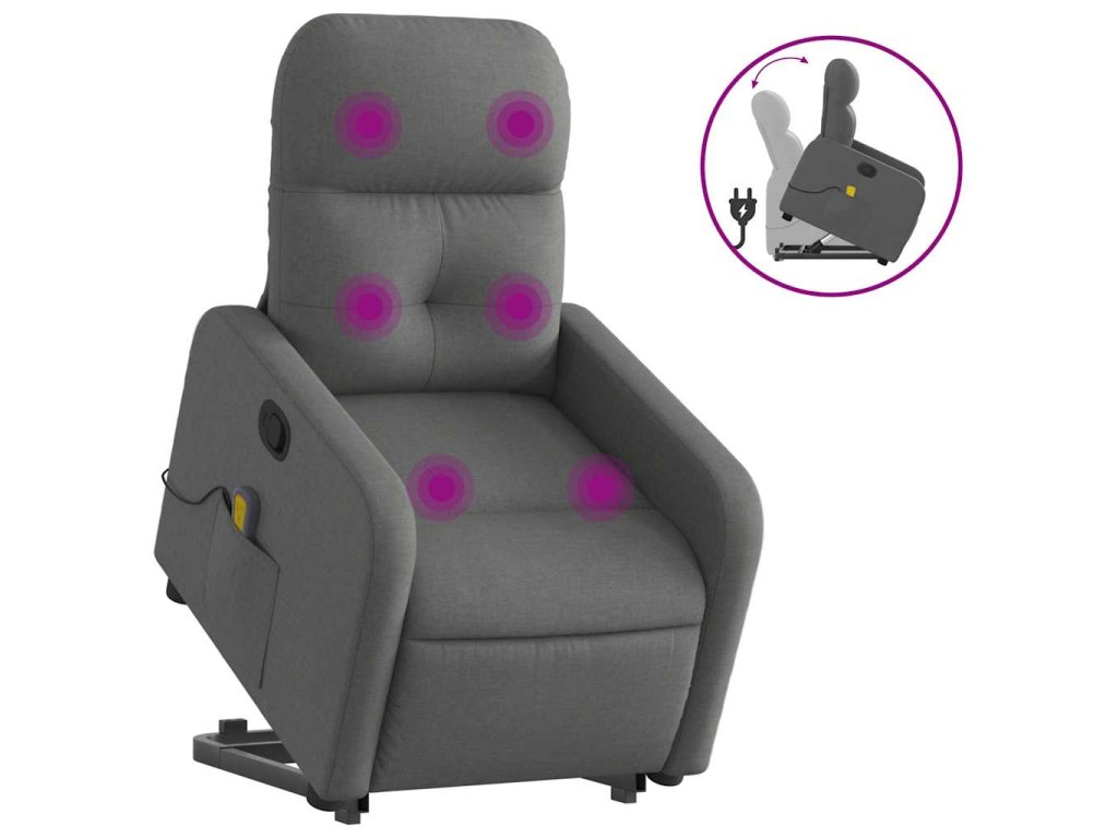 Zvedací masážní polohovací křeslo tmavě šedé textil 3206805