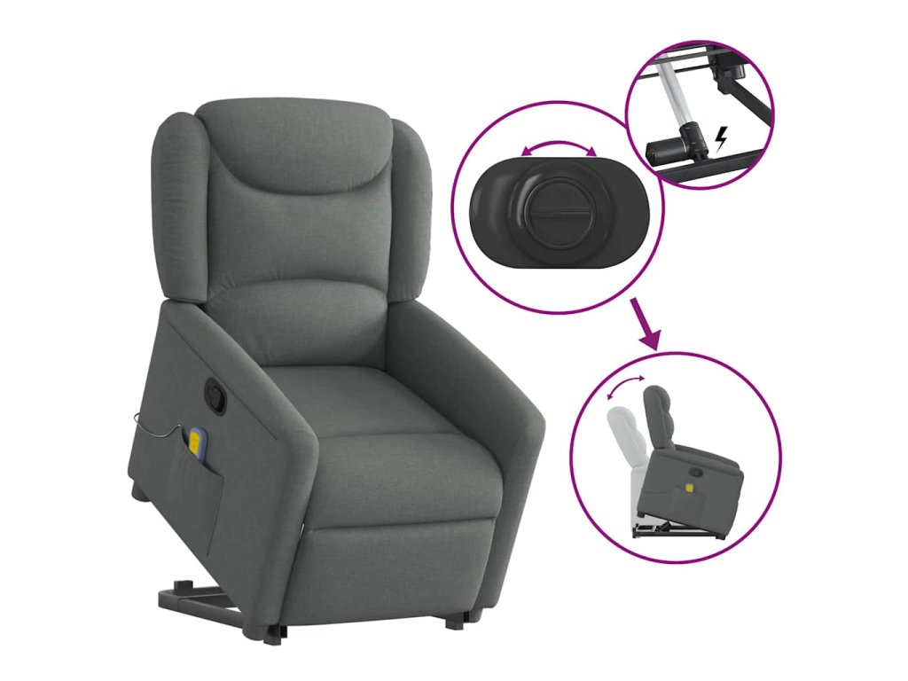 Zvedací masážní polohovací křeslo tmavě šedé textil 3303205