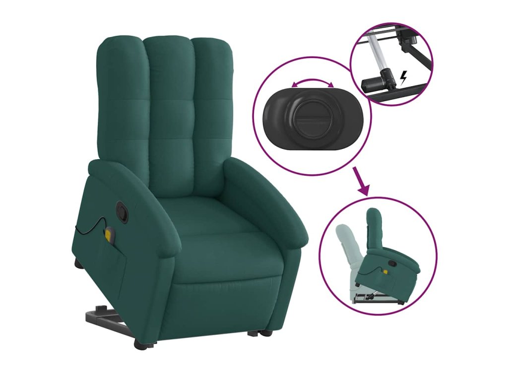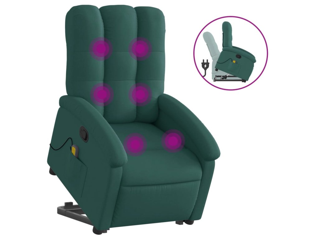 Zvedací masážní polohovací křeslo tmavě zelené textil 3204110