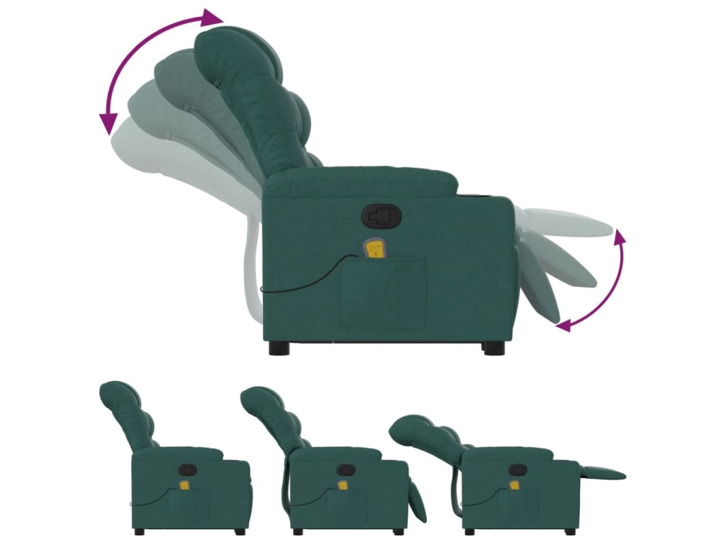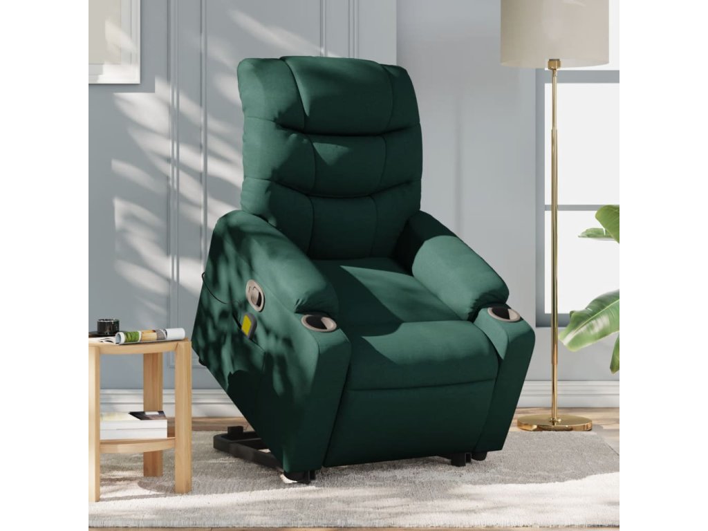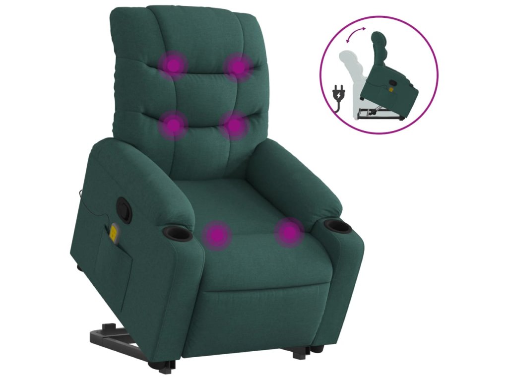 Zvedací masážní polohovací křeslo tmavě zelené textil 3206660