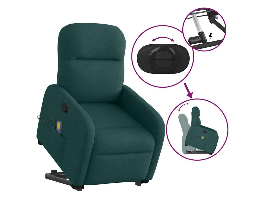 Zvedací masážní polohovací křeslo tmavě zelené textil 3302988