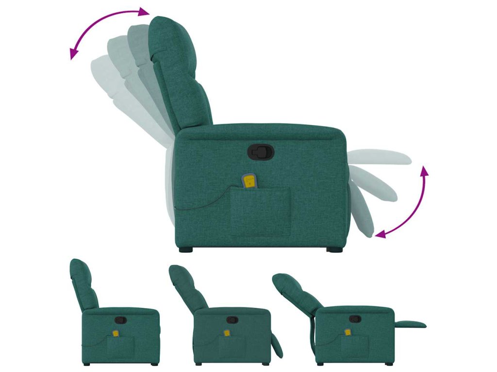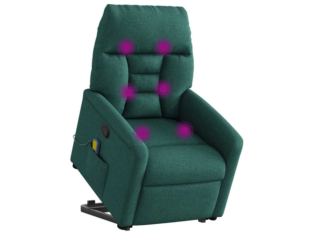 Zvedací masážní polohovací křeslo tmavě zelené textil 3303048