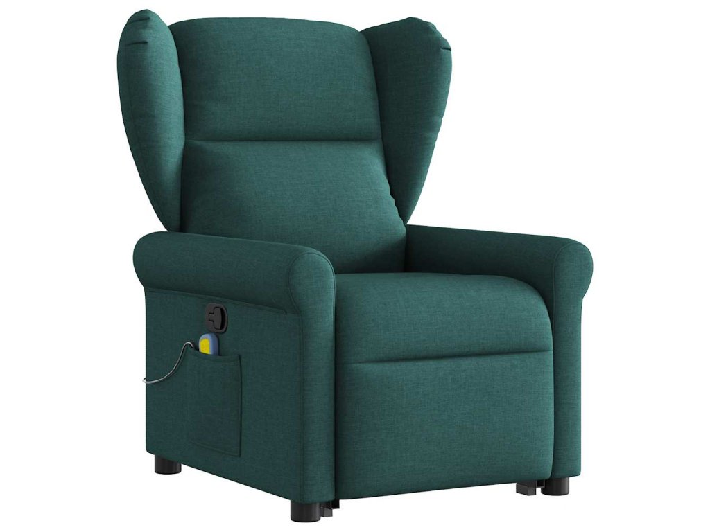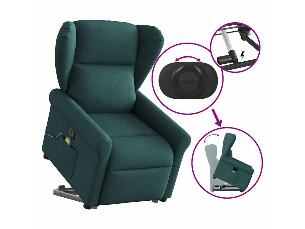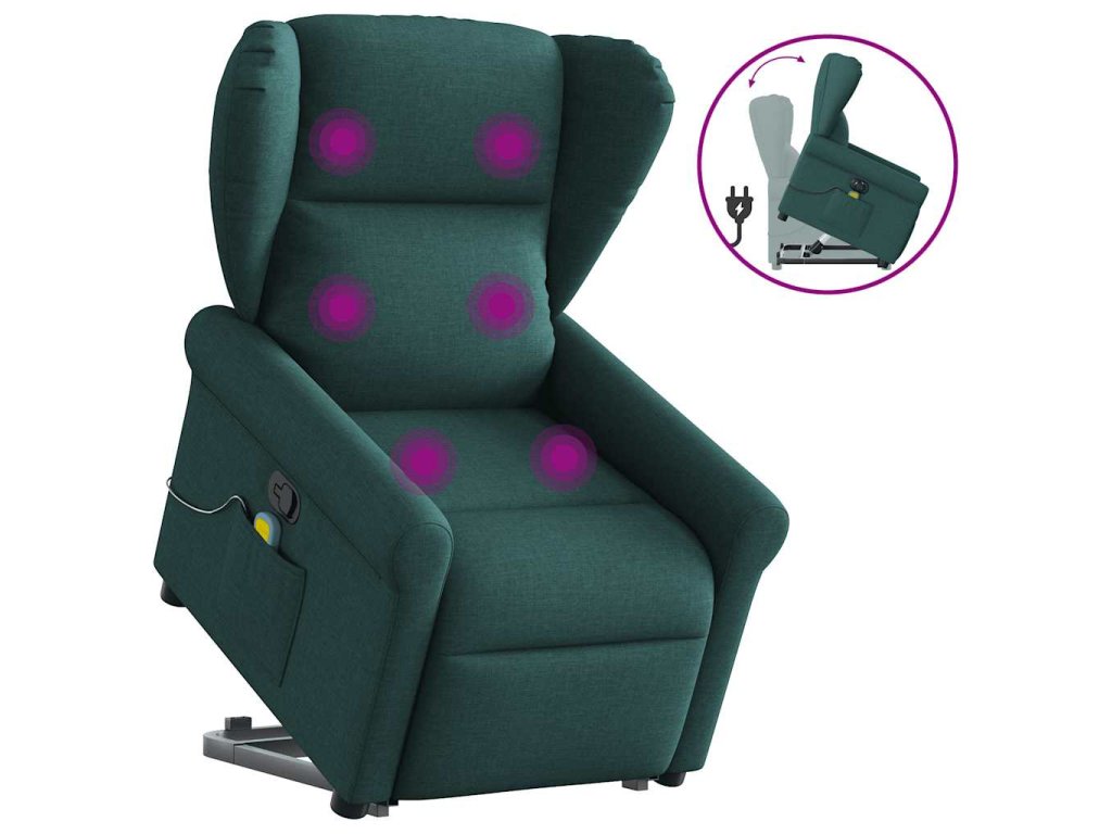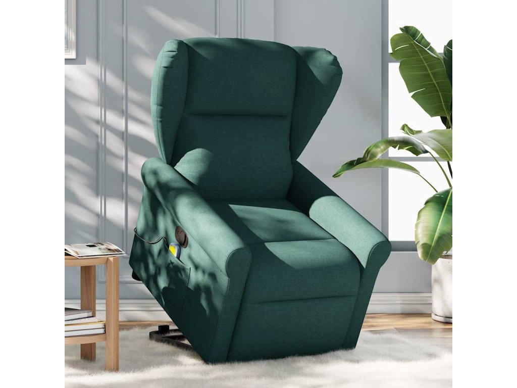 Zvedací masážní polohovací křeslo tmavě zelené textil 3303390