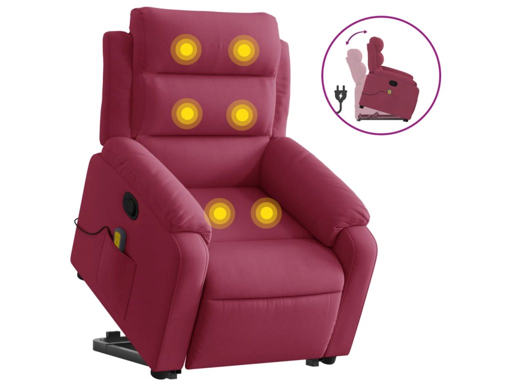 Zvedací masážní polohovací křeslo vínové samet 3205108