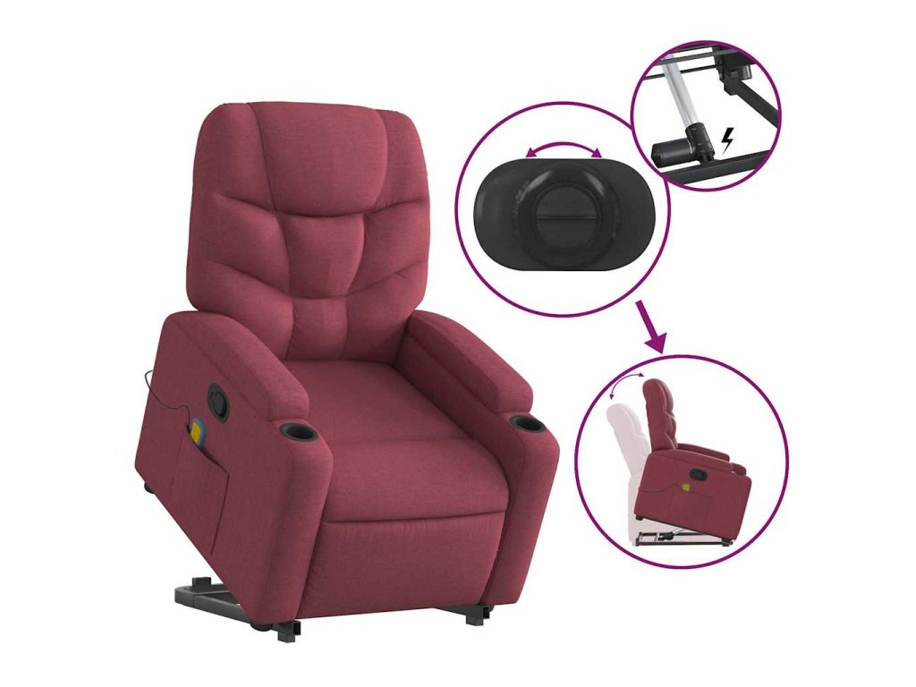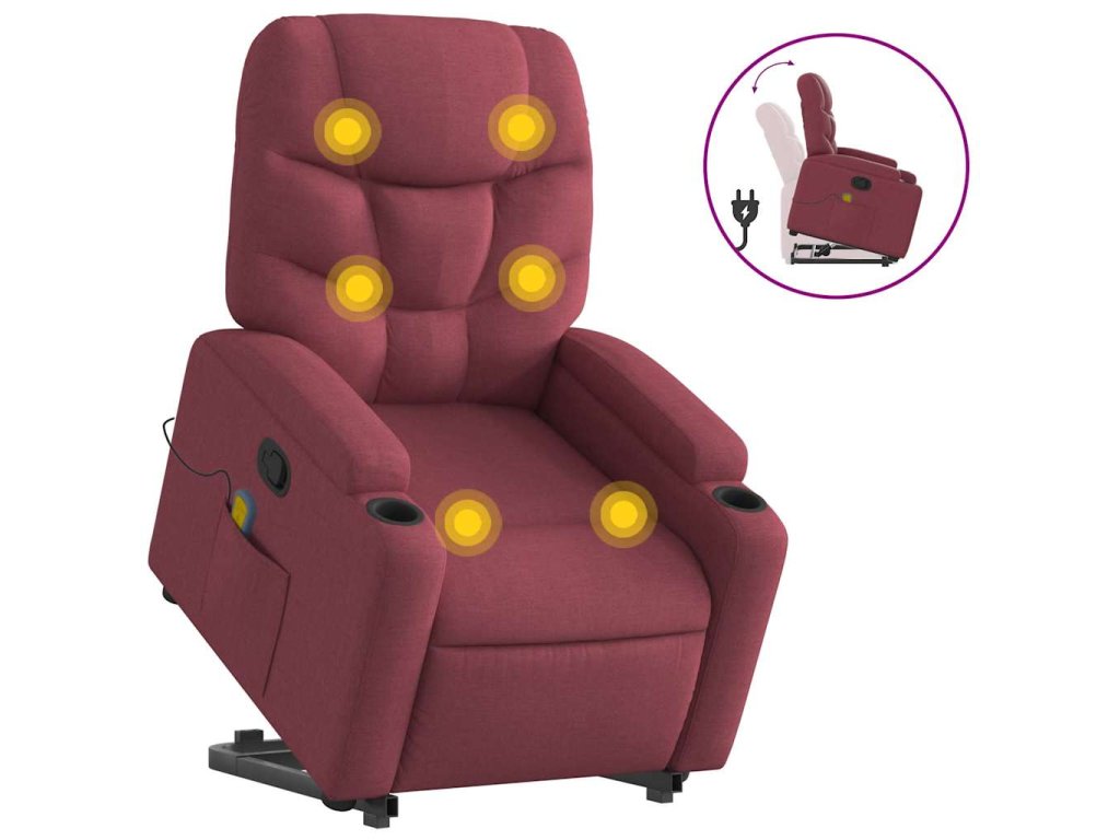 Zvedací masážní polohovací křeslo vínové textil 3204611